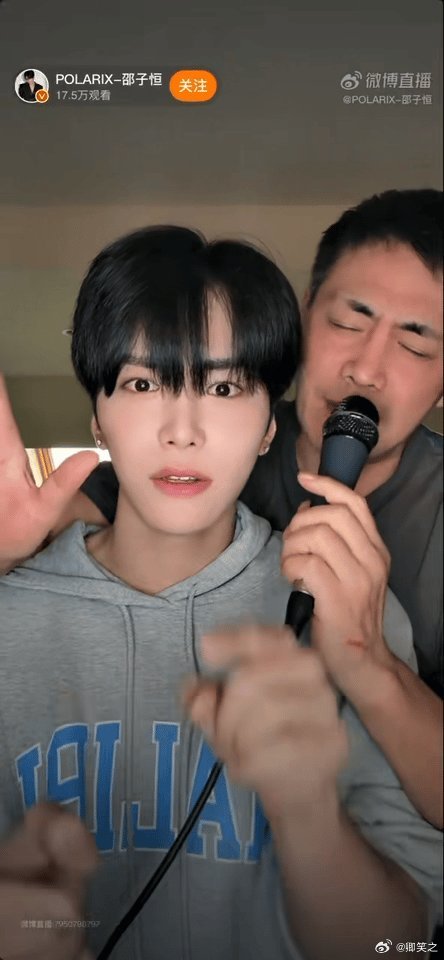 邵兵亲了邵子恒一口邵子恒直播时邵兵突然现身,两人一起唱歌互动,临走爸爸还亲了他一
