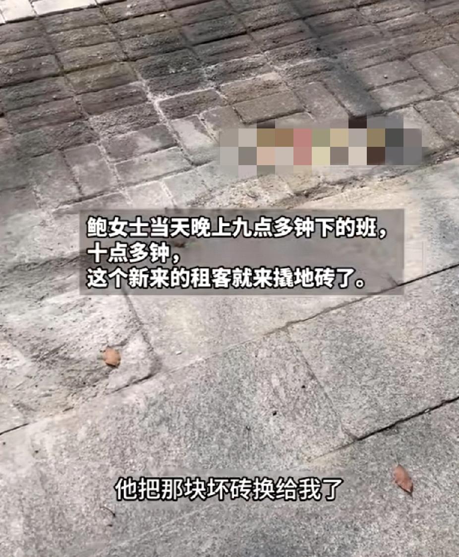 奇葩!女子新租客偷偷将门口坏地砖与女子家门口好地砖调换,得知理由后女子:“赶紧给我换回来!” (信息来源:AHTV第一时间) 鲍女士是安徽宿州人,在江苏南京开花店已经有三年多了。最近她隔壁门店空了出来,鲍女士就帮助房东找到了一个新租客。 3月12日,鲍女士开门时发现自家花店门口有一块地砖竟然碎裂了,鲍女士不敢相信自己的眼睛。因为鲍女士明明记得自家店铺门口的地砖都是完好的。鲍女士偶然向旁边瞥了一眼,看到隔壁门口那块原本碎裂的地砖变成了完好的地砖,心中瞬间明白了! 通过监控视频,鲍女士看到自己在晚上九点多钟下班回家后,大约十点,隔壁就来撬地砖了! 鲍女士不解的问隔壁租户:“你家门口这么大,就找不到一块好的地砖替换它吗?为啥非要用我门口那一块啊?” 隔壁租户表示:“就你家门口那一块比较好撬。” 鲍女士听后哈哈大笑,说:“是砖好撬还是人好欺负呢?给你三天的时间,尽快给我恢复吧。” 真的是太奇葩了!这种损人不利己的行为,真不知道对方是怎么想的。做生意的人都讲究一个风水,那也不能随便动别人的风水呀!这种人真是自私又狭隘!还好鲍女士是个豪爽不爱计较的性格,否则又避免不了一场矛盾了! 不过,这块地砖还是非常有必要让对方换回来的,不然以后的麻烦事会更多!对此,你有什么看法呢?南京 自私