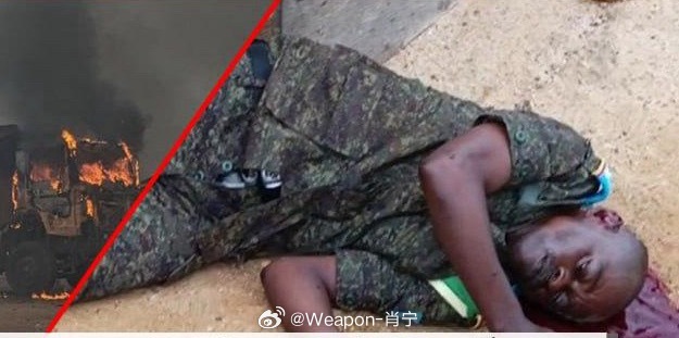 烽火问鼎计划 恐怖组织伊斯兰国非洲分支在刚果(金)东部发起袭击,造成7名士兵和17名平民丧生;一处由中国运营的矿场营房和设备被烧毁。右图:一名刚果(金)士兵在莫沙沙的袭击中丧生。莫沙沙的袭击中,两辆汽车正在燃烧。刚果军方消息人士告诉阿马克通讯社,伊斯兰国武装分子昨天袭击了刚果(金)军队的一处营房。该营房负责守卫位于伊图里省班迪盖多镇附近莫沙沙村的一处由中国运营的矿场。袭击导致7名士兵死亡,其余士兵逃走,营房被烧毁,武器被缴获。武装分子袭击了这家由中国公司运营的矿场,并放火烧毁了大部分设备。矿场内的设备以及中国工人的宿舍也遭到袭击。武装分子继续发动袭击,突袭了莫沙绍村,杀害了17名基督徒,俘虏了数十人,并烧毁了60多所房屋。