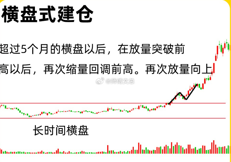 一、横盘式建仓可以分成横盘震荡建仓和箱体建仓,逻辑基本是相同的。股价在一个比较窄的价格区间上下震荡,就会形成一个明显压力位和支撑位,也就是一个横盘的平台。这种建仓方式,一般时间周期比较长,可以是周期或是月为周期,成交量一般是出现缩量,尤其是下跌的阶段,缩量更明显。随着股价长时间的横盘,那均线系统里多条常用均线就形成一个粘合状态。这就是主力温和吸筹,市场很难关注到。