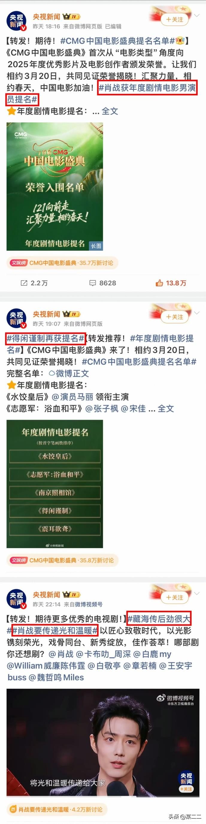 要永远相信主流媒体的眼光,肖战这样的年青人,骨子里蕴藏的是我们中国人最喜欢的努力专注,自强不息,谦逊低调,坚守底线,这样的年青人值得推荐和肯定。 肖战的演技不惧怕任何比较,肖战的戏不仅情绪转换自然、层次感丰富,感染力也是超一流。 肖战得奖是大势所趋,不依赖题材背景故事原型,用心对待作品角色的态度,群众的有口皆碑,演技经得住审视,文化出海有高度,藏海得闲拿奖都是众望所归。
