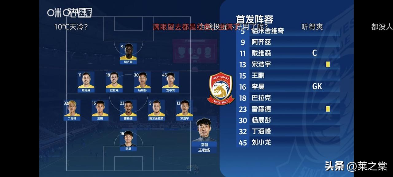 0:0,上半场青岛西海岸虽客场与上海海港战平,但四个方面的表现可圈可点。 一是外援一如既往积极与神勇,戴维森多次射门,并有一次击中立柱。 二是年轻小将技战术水平与比赛态度非常到位。李昊已经很老道了;13号宋浩宇、45号刘小龙都发挥很好;杨展彭虽然只有19岁,但精彩发挥,也让人看到青岛足球的希望。 三是贯彻主教练的技战术非常坚决。高位逼抢、前场抢断、整体防守非常坚决到位。 四是创造的机会和威胁进攻并不差于主场作战的上海海港。 战斗赢得尊重,战斗西海岸!