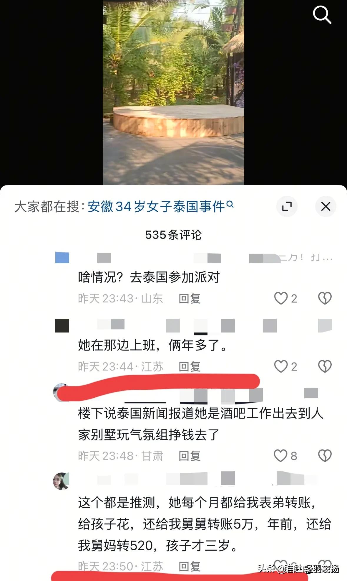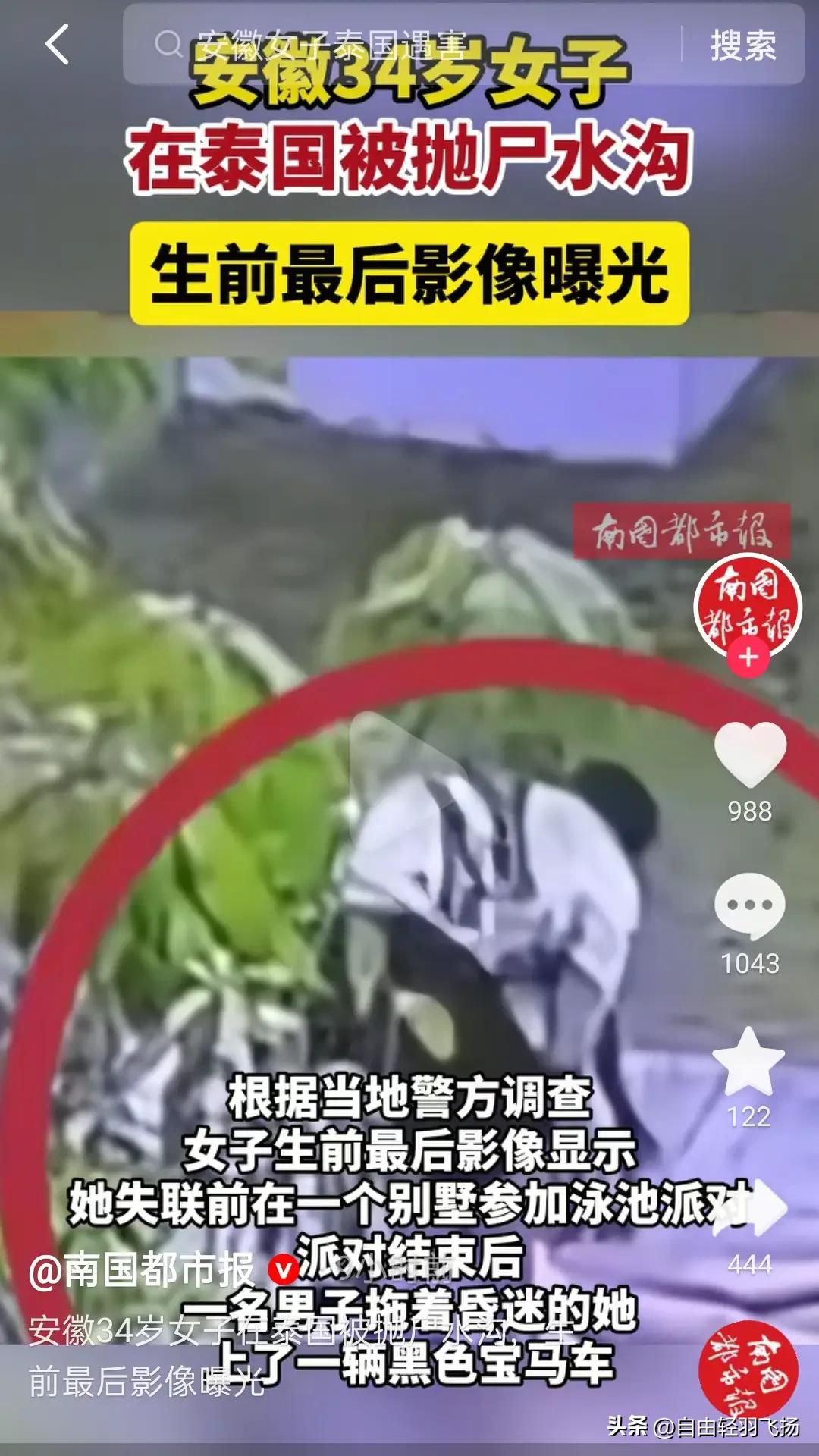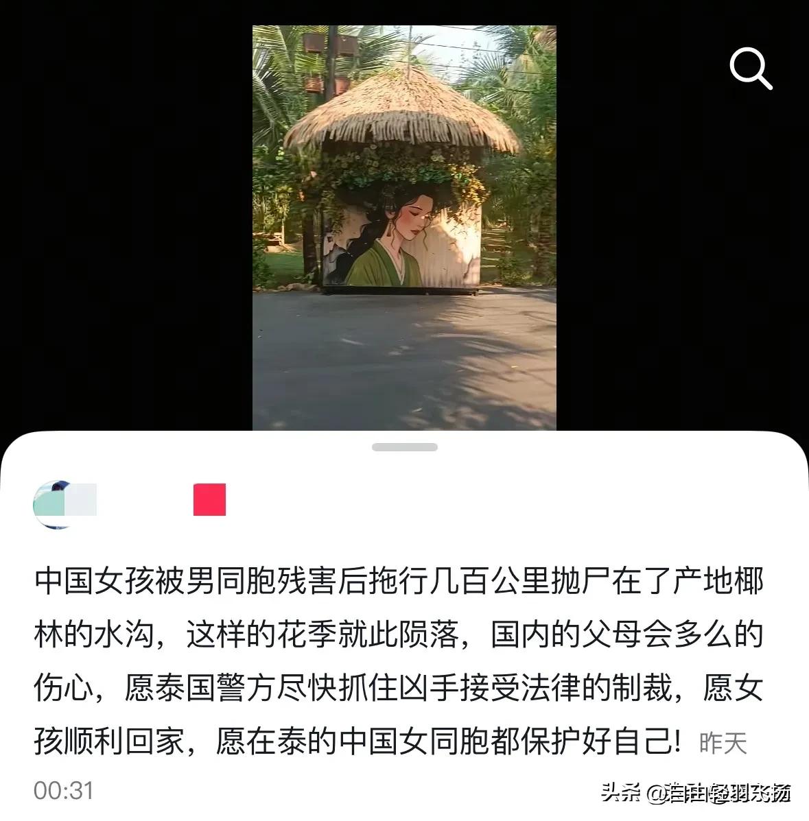 在泰国被抛尸水沟的34岁女子是安徽人,她的孩子才三岁多!出国两年多她每个月都会给丈夫转一笔不少的钱。但具体是做什么工作,她从未向家人透露。 亲属说,季女士以前就是个普通家庭妇女。两年前跟丈夫闹了矛盾,离家去了泰国。那会儿孩子刚一岁,她狠心割舍,或许是想在异国拼出条路来。 这两年,她责任心很强。每月按时打钱回家,年前还给公公转了5万,给婆婆发了520的红包。谁都没想到,年初刚过,她的生命就戛然而止。 事情发生在2月,那天,季女士去一个私人别墅参加泳池派对。监控拍下了最后一幕:一名男子拉着意识模糊的她,上了辆黑色宝马车。之后发生了什么,成了谜。 2月25日,她的遗体在距离派对地点238公里的水沟里被发现。距离被带走,已经过了好几天。 其实,季女士早有预感。2月21日清晨,她给闺蜜连发多条求助信息,还发了具体位置。可闺蜜8小时后才看到,一切都晚了。 让人想不通的是,危急关头,她为啥不向丈夫求救,反而找了未必能及时回复的闺蜜?是夫妻间的矛盾还没化解,还是心里早有隔阂?如果求助信息能被及时看到,结局会不会不一样? 如今,当地警方锁定了嫌疑人,案件还在查。可无论结果如何,那个三岁多的孩子,再也等不回妈妈了。那个每月盼着她汇款的家,从此少了一份牵挂,多了无尽的痛。 季女士的故事,像一记警钟,敲在每个在外打拼的人心上。异国他乡,看似热闹的派对,可能藏着看不见的陷阱。陌生人的笑脸背后,或许藏着不怀好意的心思。 出门在外,清醒是最好的护身符。别让酒精麻痹了神经,别让客套模糊了底线。遇到不对劲,第一时间求救,找最靠谱的人,用最直接的方式。毕竟,生命只有一次,容不得半点侥幸。 谁也不知道,季女士在泰国经历了什么。她没说的工作,没讲的委屈,或许都藏着不为人知的艰辛。可再难,也不该用生命去换。她惦记着家里的孩子,却没能想到,自己会以这样的方式离开。 这世上,最痛的莫过于白发人送黑发人,莫过于幼童不识生死,还在问妈妈何时回家。季女士的悲剧,提醒我们:无论和家人有多大矛盾,危急时刻,家人永远是最该信任的后盾。也提醒每个接收信息的人,及时回复,或许就能挽回一条生命。 愿在外的同胞,都能平平安安。别让赚钱的执念,盖过对安全的警惕。别让远方的牵挂,变成永远的遗憾。生命宝贵,平安是福。