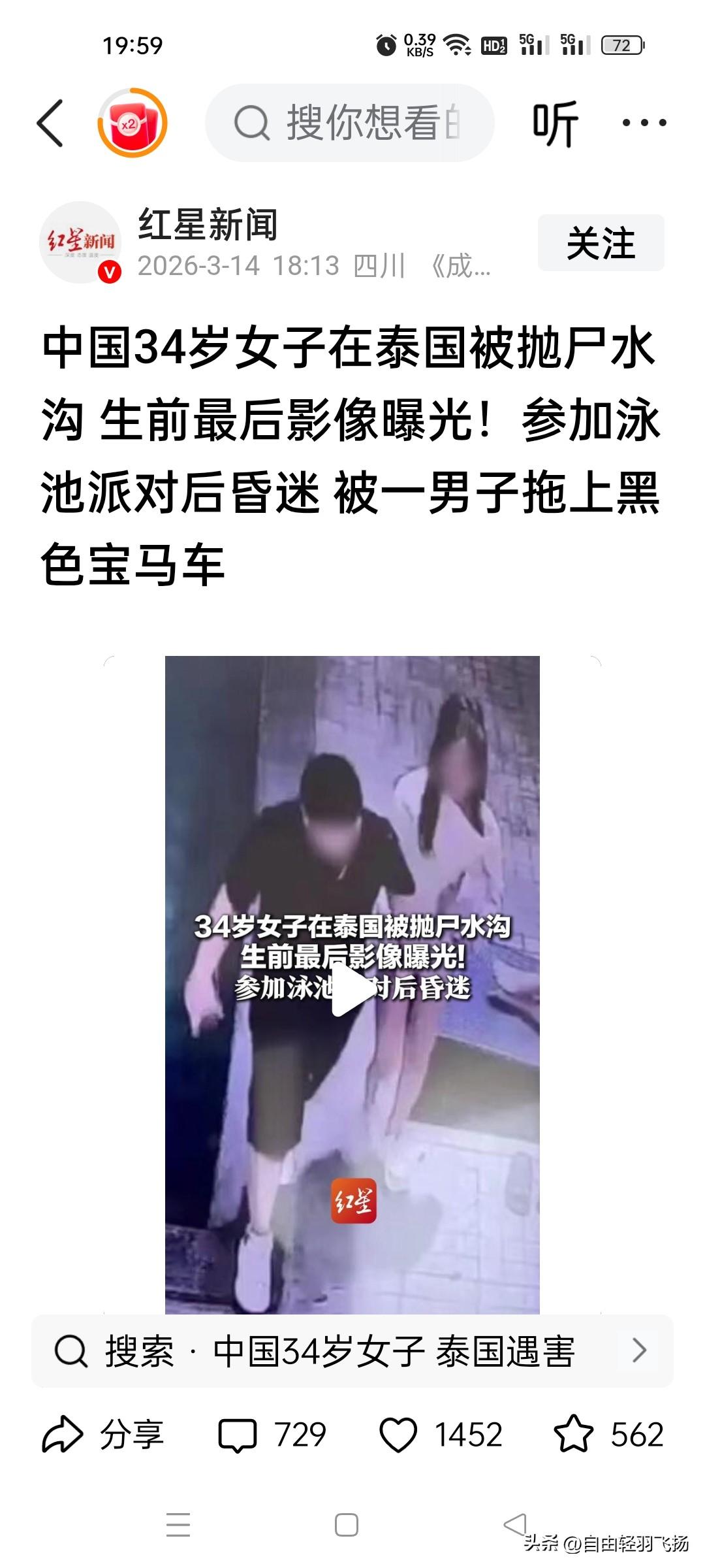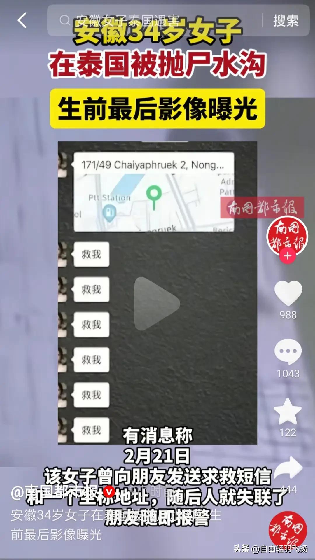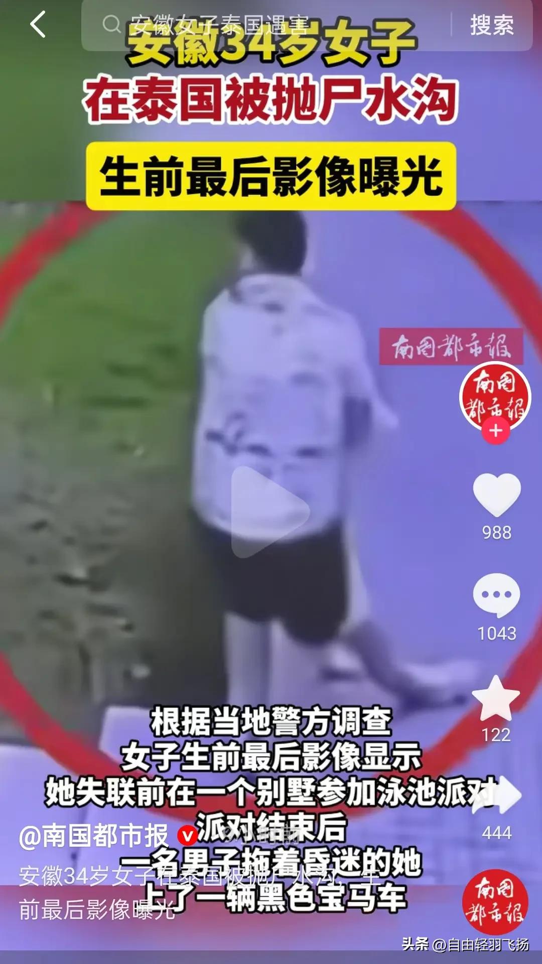 在泰国被抛尸水沟的34岁女子是安徽人,她的孩子才三岁多!出国两年多她每个月都会给丈夫转一笔不少的钱。但具体是做什么工作,她从未向家人透露。 亲属说,季女士以前就是个普通家庭妇女。两年前跟丈夫闹了矛盾,离家去了泰国。那会儿孩子刚一岁,她狠心割舍,或许是想在异国拼出条路来。 这两年,她责任心很强。每月按时打钱回家,年前还给公公转了5万,给婆婆发了520的红包。谁都没想到,年初刚过,她的生命就戛然而止。 事情发生在2月,那天,季女士去一个私人别墅参加泳池派对。监控拍下了最后一幕:一名男子拉着意识模糊的她,上了辆黑色宝马车。之后发生了什么,成了谜。 2月25日,她的遗体在距离派对地点238公里的水沟里被发现。距离被带走,已经过了好几天。 其实,季女士早有预感。2月21日清晨,她给闺蜜连发多条求助信息,还发了具体位置。可闺蜜8小时后才看到,一切都晚了。 让人想不通的是,危急关头,她为啥不向丈夫求救,反而找了未必能及时回复的闺蜜?是夫妻间的矛盾还没化解,还是心里早有隔阂?如果求助信息能被及时看到,结局会不会不一样? 如今,当地警方锁定了嫌疑人,案件还在查。可无论结果如何,那个三岁多的孩子,再也等不回妈妈了。那个每月盼着她汇款的家,从此少了一份牵挂,多了无尽的痛。 季女士的故事,像一记警钟,敲在每个在外打拼的人心上。异国他乡,看似热闹的派对,可能藏着看不见的陷阱。陌生人的笑脸背后,或许藏着不怀好意的心思。 出门在外,清醒是最好的护身符。别让酒精麻痹了神经,别让客套模糊了底线。遇到不对劲,第一时间求救,找最靠谱的人,用最直接的方式。毕竟,生命只有一次,容不得半点侥幸。 谁也不知道,季女士在泰国经历了什么。她没说的工作,没讲的委屈,或许都藏着不为人知的艰辛。可再难,也不该用生命去换。她惦记着家里的孩子,却没能想到,自己会以这样的方式离开。 这世上,最痛的莫过于白发人送黑发人,莫过于幼童不识生死,还在问妈妈何时回家。季女士的悲剧,提醒我们:无论和家人有多大矛盾,危急时刻,家人永远是最该信任的后盾。也提醒每个接收信息的人,及时回复,或许就能挽回一条生命。 愿在外的同胞,都能平平安安。别让赚钱的执念,盖过对安全的警惕。别让远方的牵挂,变成永远的遗憾。生命宝贵,平安是福。