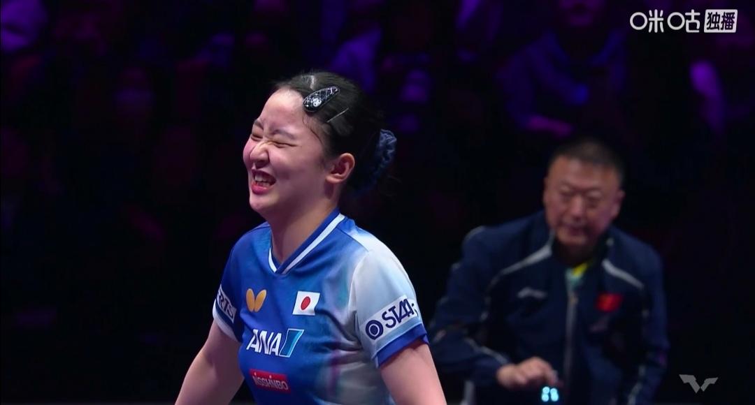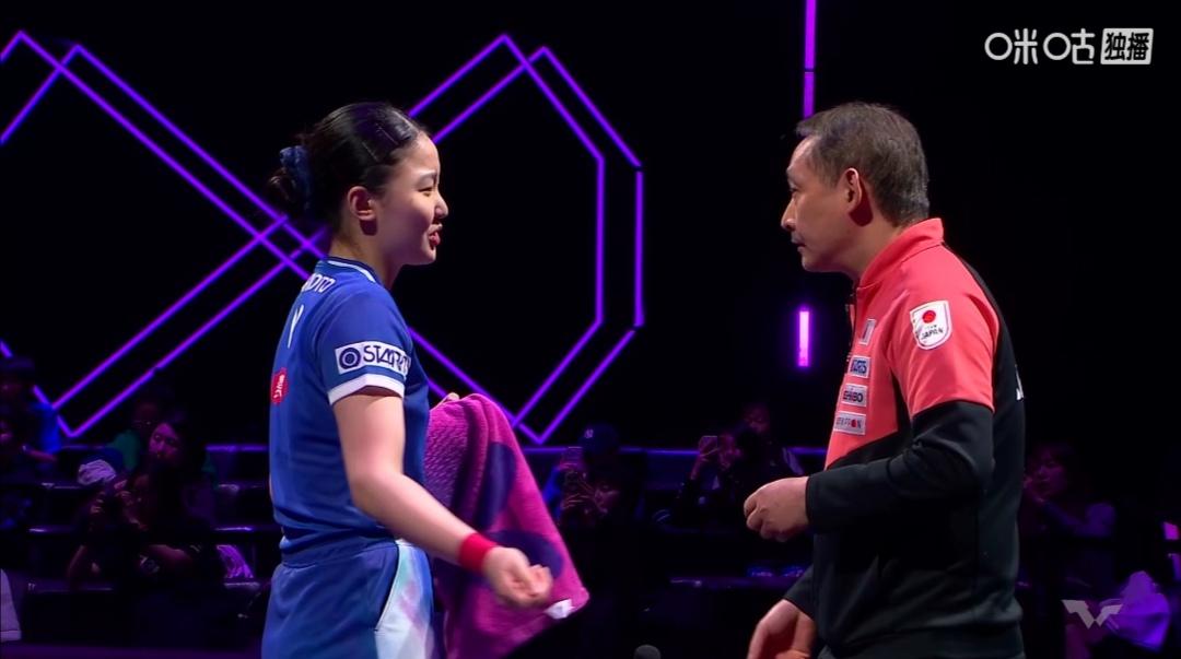 蒯曼鏖战七局,与冠军擦肩而过! 重庆冠军赛女单决赛,是中日对决,也是青春对话。 第1局,蒯曼1-6落后,6-11告负,打得比较沉闷! 第2局,虽然蒯曼1-5落后,连得7分,8-5逆转11-9扳平局分。 蒯曼落点、两条直线、速度渐渐打出来了。 第3局,4平后,连得3分,11-7。大分2:1领先。 第4局,蒯曼1-4落后,8-9打停小张本。9-11负。 局分2平。 第5局,蒯曼2-5落后,追至5-6,断电5-9,6-11又输一局。 局分2:3落后。 第6局,0-3落后,蒯曼暂停。两个运气球3平!8平,敢于出手,10-8领先,11-9扳平局分。 局分3:3,把比赛拖入决胜局! 第7局,又是0-3落后,3-5换边,5-11告负! 局分3:4! 蒯曼3:4(6-11;11-9;11-7;9-11;6-11;11-9;5-11)憾负日本张本美和。 蒯曼继续努力!
