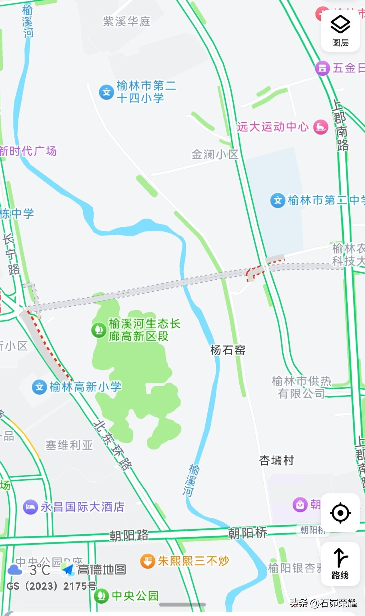榆林榆溪大道东延项目最新进展来了 最新进展见图1-图3,项目建成后将是连接榆林高新区和南郊又一个通道(图4是建成后效果图),新建项目位于开光桥和榆阳桥之间(图5虚线部分是项目相对位置图),目前榆溪河生态长廊高新区段多处已围挡(见图6)。