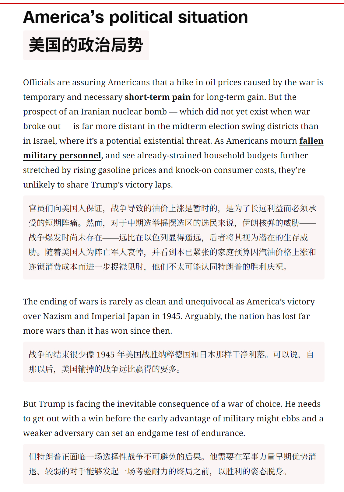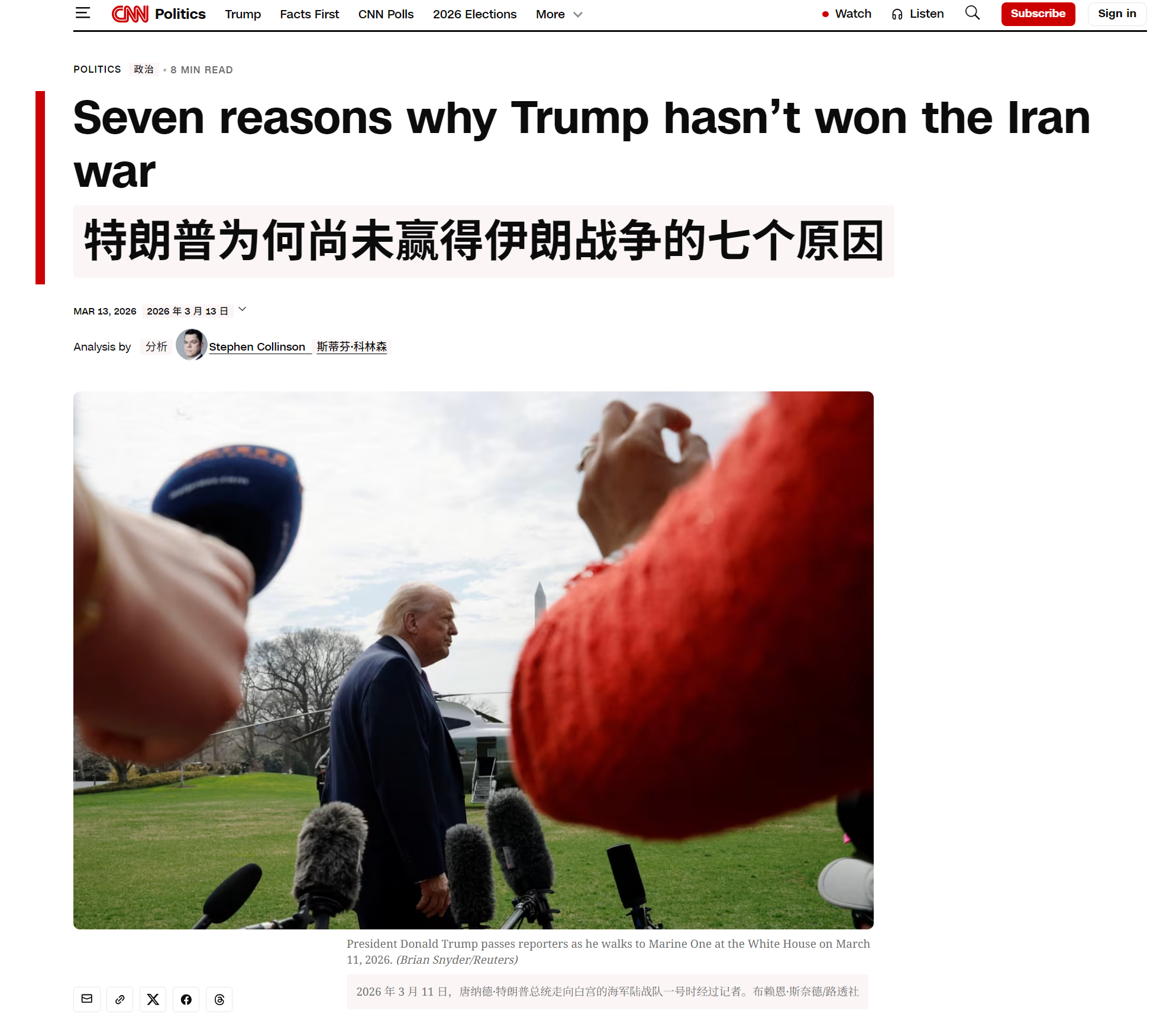 🔻CNN:我观特朗普有七败。🔹一败:无法迅速打通霍尔木兹海峡。🔹二败:替代老哈梅内伊的是小哈梅内伊。🔹三败:以色列要打永无止境的战争。🔹四败:对其战争目标的描述混乱且矛盾。🔹五败:无法摧毁的伊朗核问题。🔹六败:伊朗人心在外部侵略下空前凝聚。🔹七败:草啊这些民主党怎么这么坏啊。🔻特朗普团伙要破防了。伊朗称要打到美以投降受到惩罚海外新鲜事中东现场直击伊朗用涂鸦骗导弹轰炸