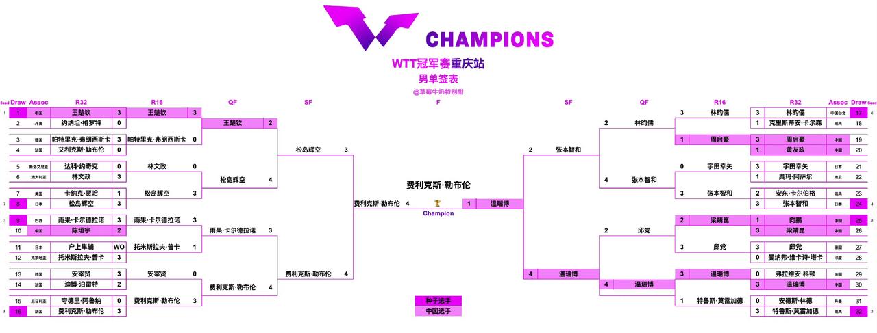 4-2横扫日本张本智和,决赛1-4无缘冠军,19小将温瑞博不敌法国“眼镜侠”小勒布伦。刚刚结束的2026年WTT重庆冠军赛将展开男子单打决赛,中国小将温瑞博迎战法国“眼镜侠”小勒布伦。此役,温瑞博开局0-2落后,非常艰难的情况下,他将比分追成1-2。到勒布伦在第四局再度发力,3-1扩大优势并赢得两个赛点。绝境下,温瑞博展开顽强反击,无奈小勒布伦打得非常霸气,13-11锁定胜局,总比分4-1夺得冠军,温瑞博尽管没能夺得冠军,但在半决赛4-2淘汰张本智和还是非常给力!国乒小将温瑞博 菲利克斯勒布伦