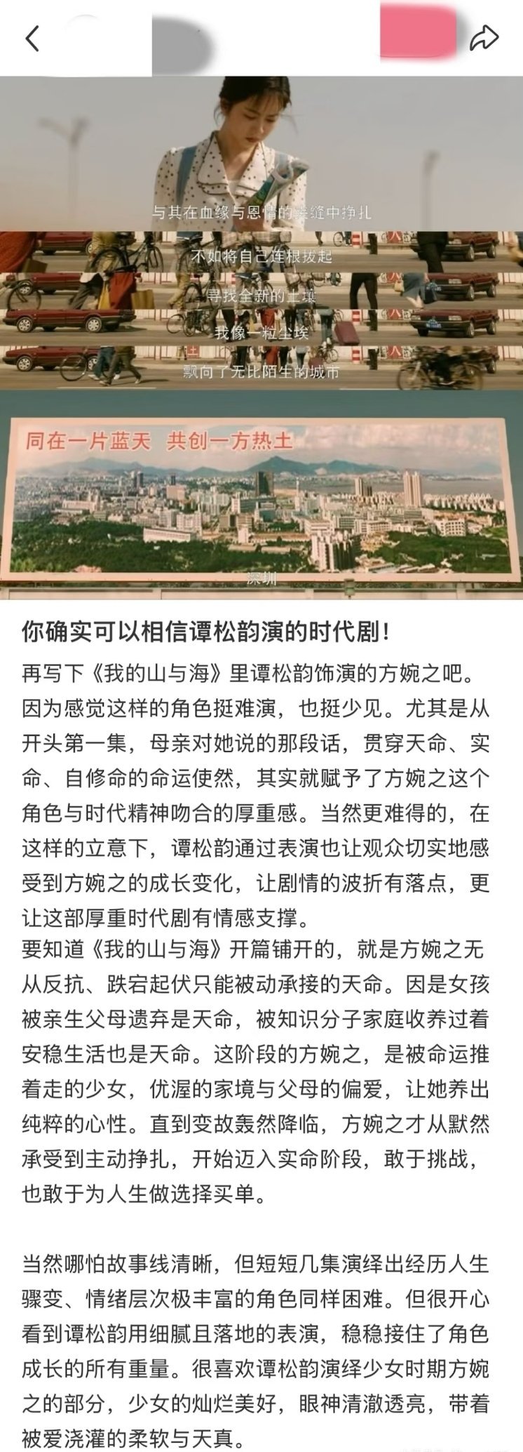 《我的山与海》一播,才发现谭松韵的剧粉盘这么扎实哎,果然观众缘才是演员最大的底气