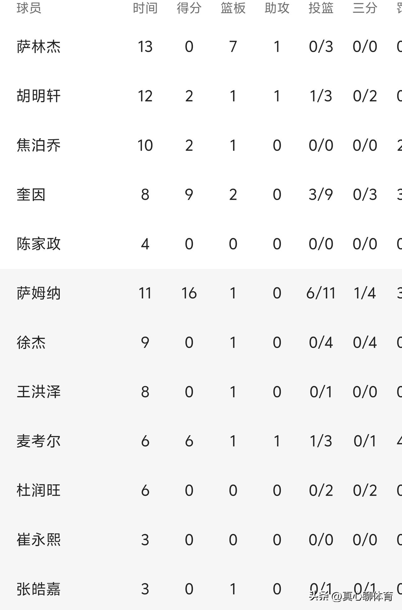 17投中1,5.9%的命中率,这就是广东队上半场进攻端最直接的体现[捂脸][捂脸][捂脸] 1、杜锋对于3分战术的固执。就是这样极低的三分命中率的情况下,杜锋还是只给球员布署3分战术 2、国内球员不会打球了[笑哭][笑哭][笑哭]上半场广东队拿了35分,胡明轩和焦泊乔各2分,其他球员全部挂零[捂脸][捂脸][捂脸]萨姆纳16分,奎因9分,麦考尔6分,萨林杰也是挂零 3、杜锋边缘化徐杰。首发阵容根本没有控卫,就算徐杰在场也只是打无球战术的,过渡一下就站底角了[笑哭][笑哭][笑哭]坐在替补席的杰师傅眼神中透露着无奈