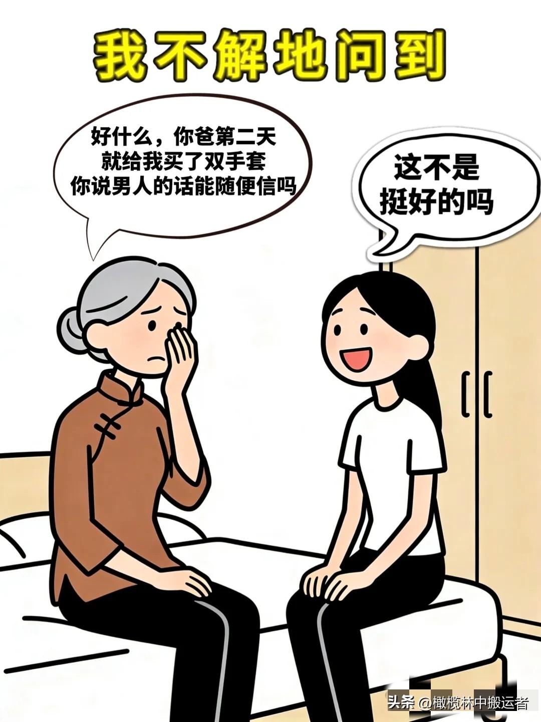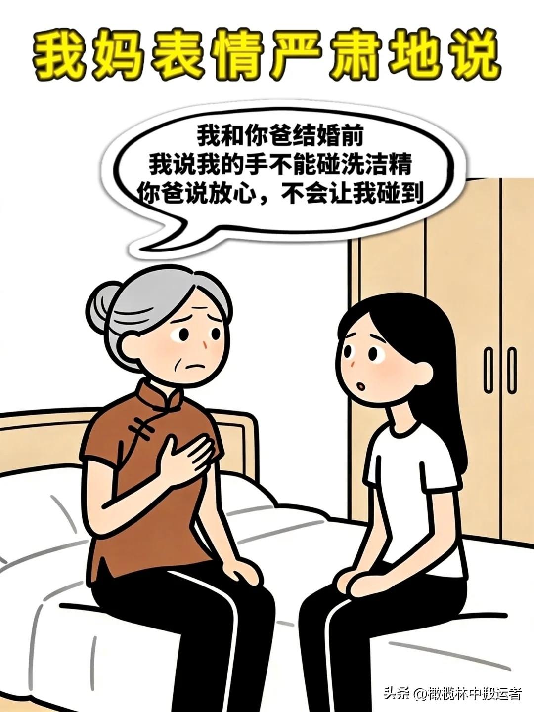 笑一笑:马上结婚了,我妈说:以后别随便相信男人的话。我问为什么?我妈:和你爸结婚前,我说我手不能碰洗洁精,你爸说不会让我碰,结果
