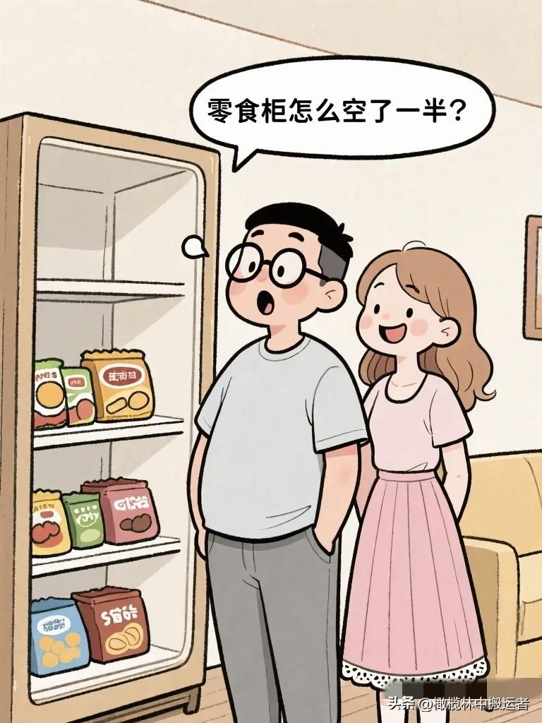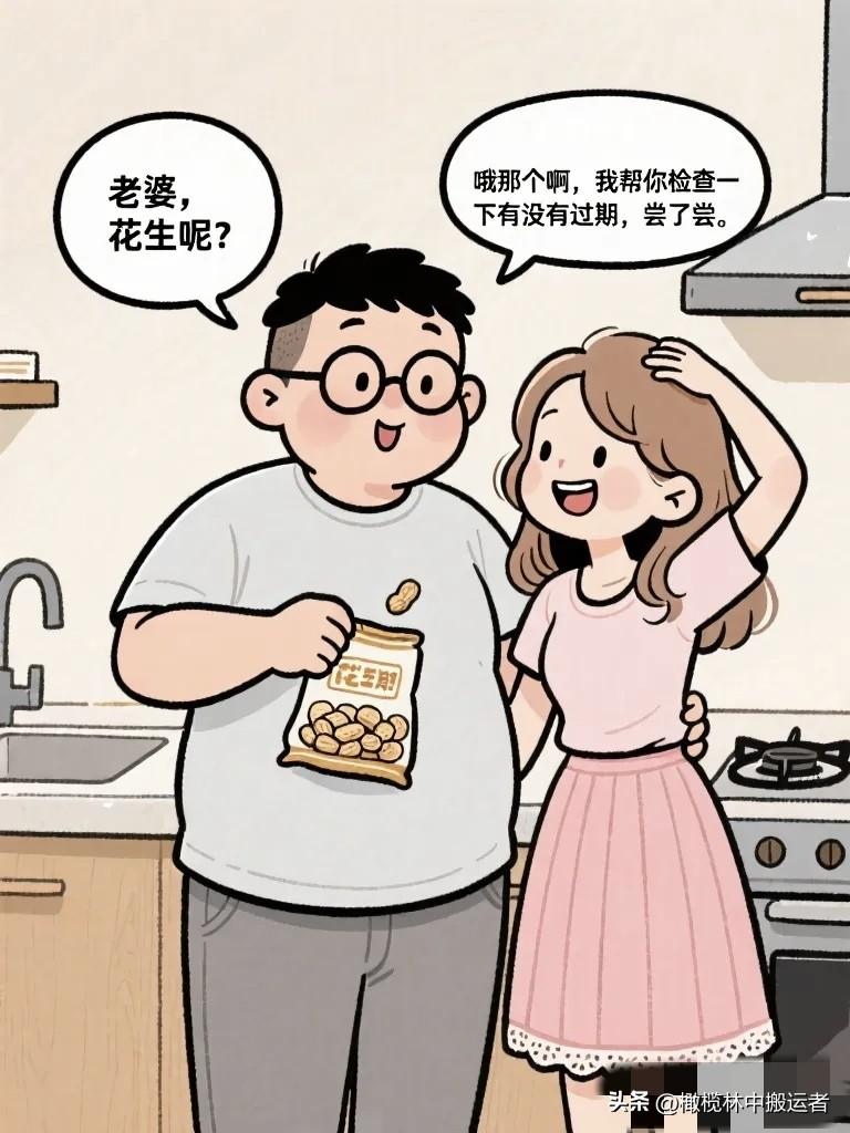 搞笑漫画:老婆宣布:“从今天起我要减肥,年货零食我一口都不碰!” 老公特别支持:“好!我监督你!” 第二天老公发现花生少了一袋。