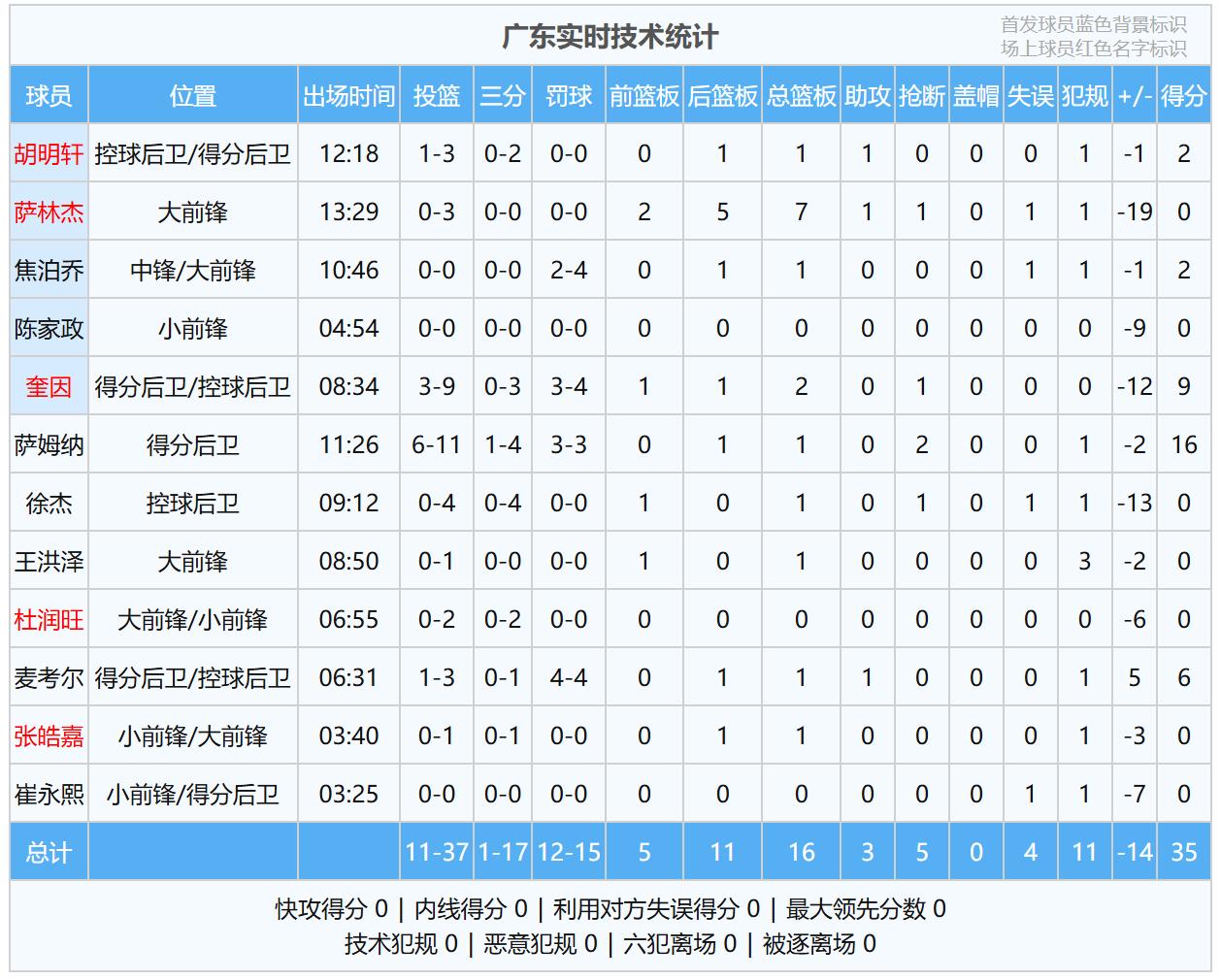 三分17中1!广东队找不到自家的篮筐,球迷:不可思议 CBA常规赛,迎来了一场焦点比赛,广东队坐镇主场PK辽宁队。由于,广东队锋线悍将崔永熙,本场比赛正式复出,因此,也是让这场比赛变得有更多的看点,让球迷十分期待。我们可以看到,广东队主场也是坐满了观众。 然而,广东队的表现却大跌眼镜,让人大失所望。开局,辽宁队打出了一波18-3的攻击波,取得了一个梦幻开局。在这段时间,我们可以看到,广东队进攻十分凌乱,乱七八糟,没有组织,没有串联,投篮频频打铁。到首节比赛打完,广东队以11-26落后辽宁队15分。 进入第二节比赛,大家以为广东队会有所好转,当然了,也确实是有一些好转,进攻端,效率更高一些。但是,辽宁队依然保持良好的进攻效率,因此,两队的分差,依旧维持在十几分。到半场比赛打完,广东队以35-49落后辽宁队14分。 对于这样的一个半场结果,可以说,很多球迷都是没有想到,没有想到,一个完整体的广东队,居然被辽宁队打得找不到北。 那么,广东队上半场比赛,为何会如此糟糕呢?分析来看,一个就是主教练杜锋用人不当,战术有问题。比如,没有让徐杰首发,比如,让胡明轩打组织后卫。总之,在阵容安排方面,广东队存在大问题。 另一个就是球队三分球实在太糟糕了,前10次出手,没有一次命中,整个上半场比赛,广东队三分球出手17次,只命中了1球,三分球命中率为5.8%,如此低的三分球命中率,真的是十分罕见。 看到广东队如此表现,有球迷表示:广东队球员怎么啦?自己家的篮筐都不认识了?三分球17投1中,真的是不可思议!业余球员,也不会投成这样吧? 那么,各位看官,您对广东队表现,有什么看法呢?杜锋应该要下课吗?广东队为何会表现如此糟糕呢?