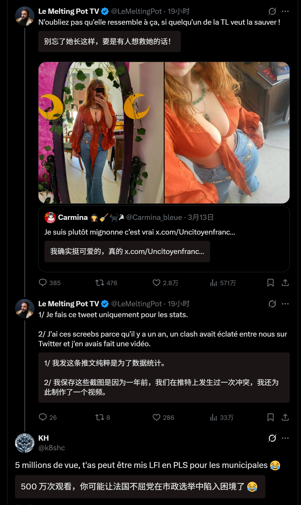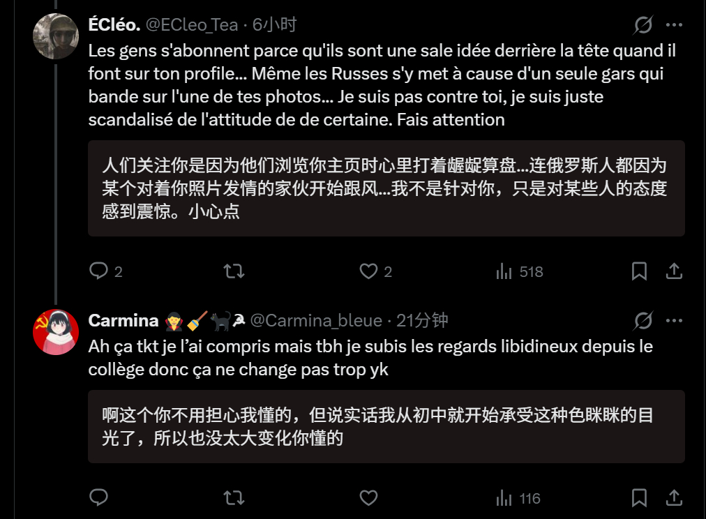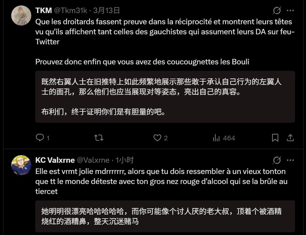 🔻网友分享:法国右翼跟法国左翼网民在网上吵架,然后右翼网民把左翼的姑娘在网上发过的照片开了。🔻于是,现在法国网民纷纷表示要支持左翼,“500 万次观看,你可能让右翼在市政选举中陷入困境了”、“感谢你把它放在我的时间线上,与你不同,她值得尊敬,并且比你更接近法国价值观”。海外新鲜事热点现场