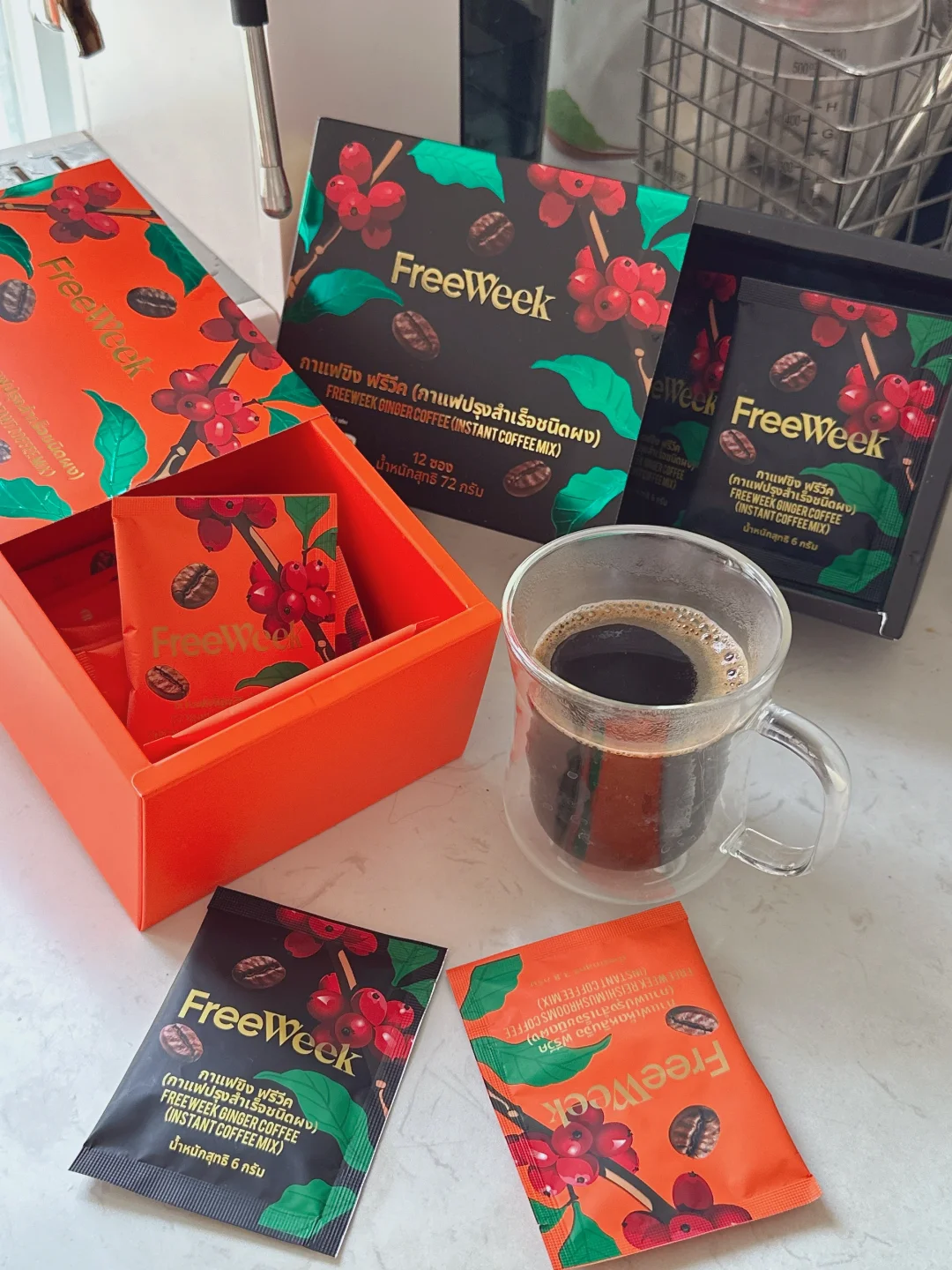 今天试试不一样的咖啡 泰国的包装一向简陋,但内料足啊! 64%添加的黑姜养生咖啡(黑金包装) 泰国天然黑姜 + 象山阿拉比卡豆 冲开就是浓郁的咖啡香混着温润的姜辛 喝一口暖到胃里,独立小包装揣包里超方便 口感顺滑不苦,比速溶咖啡香太多!