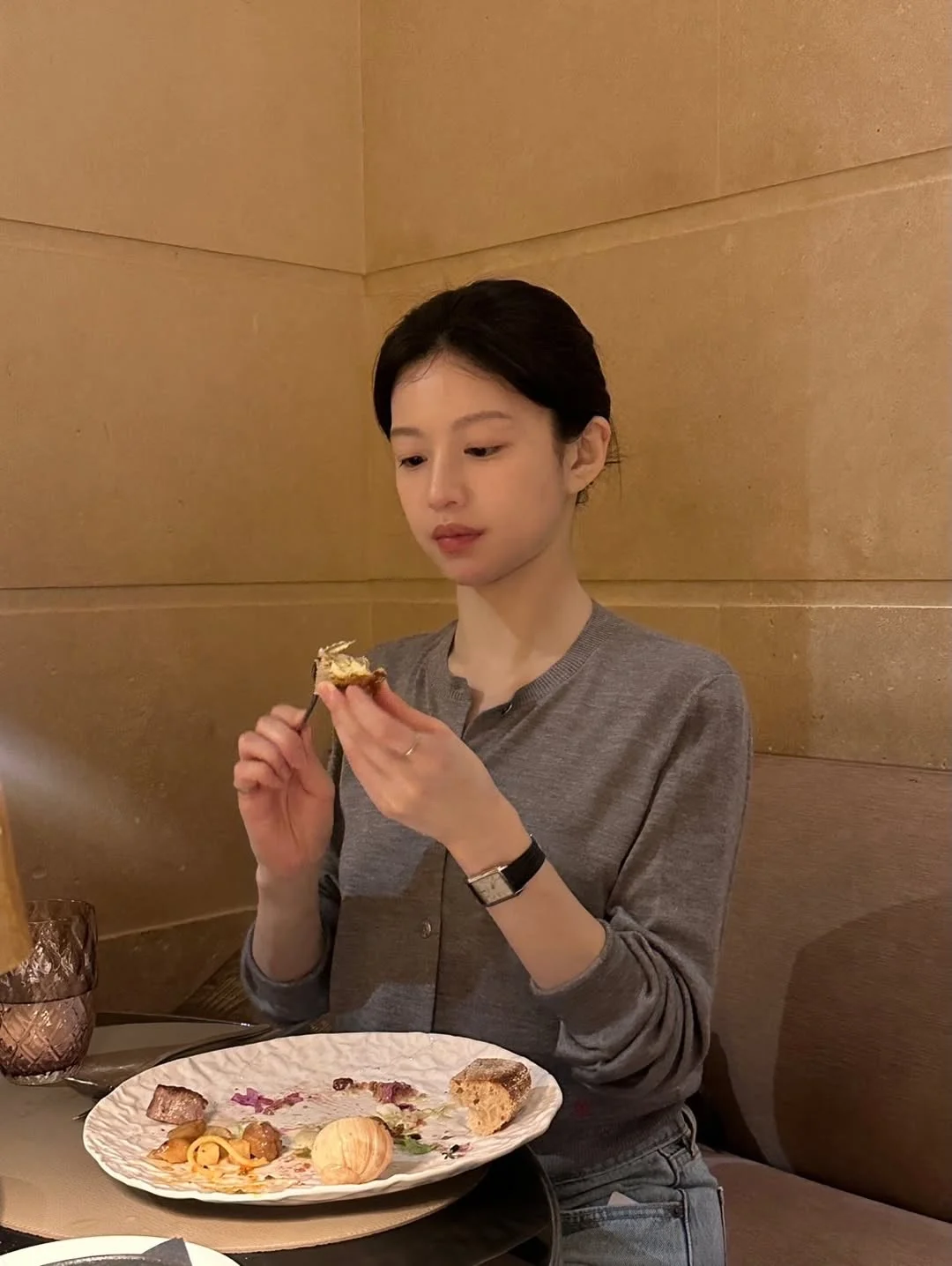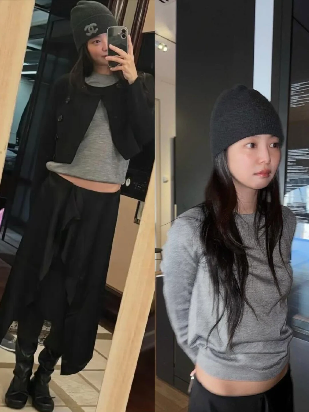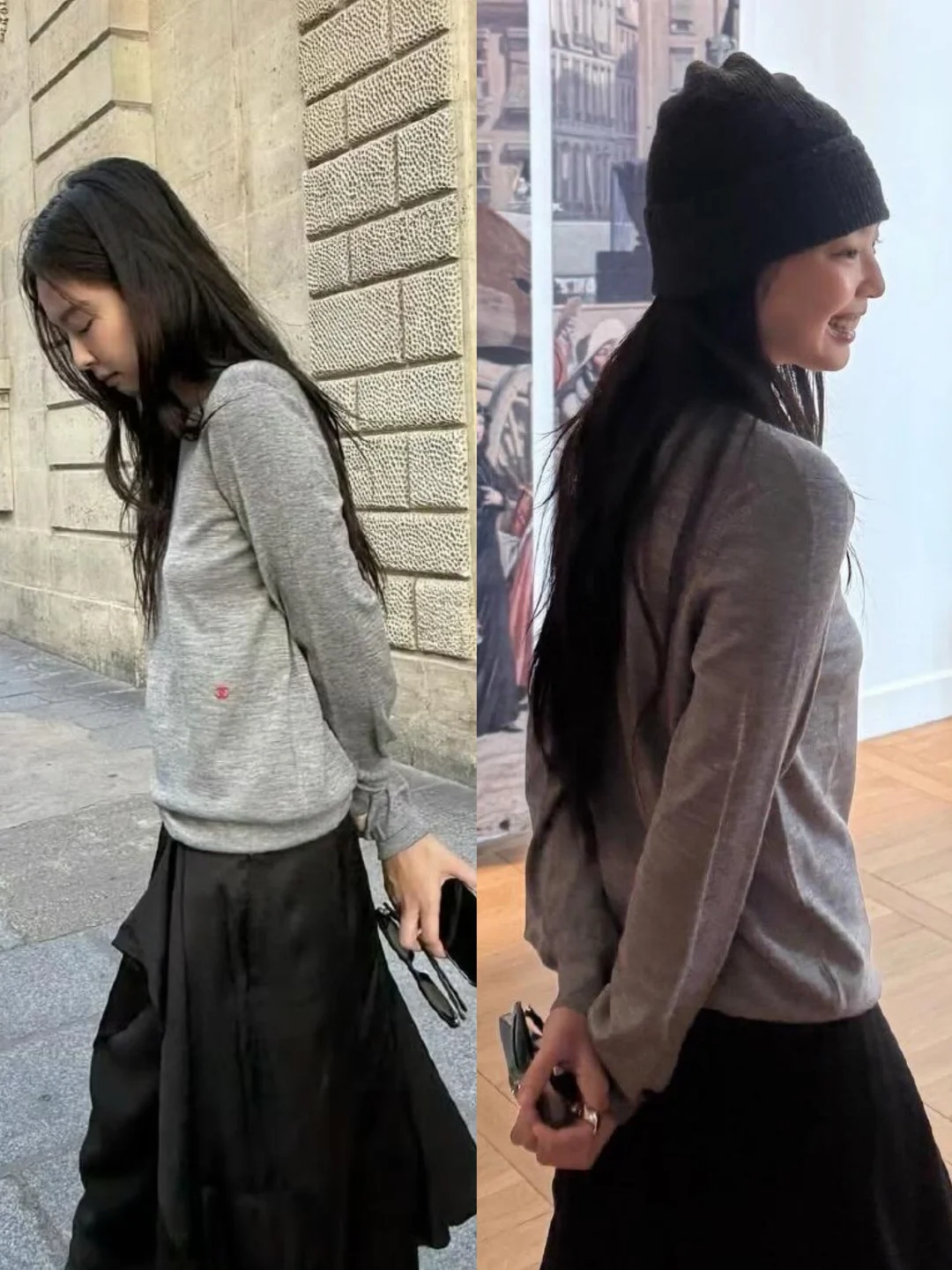 高允真 今日更新,穿了件灰色针织配牛仔裤,随性又松弛! Jennie之前也穿过同款,她搭配的是半裙和长靴,也是时髦感拉满! 感觉马修的设计都还蛮实穿高级的[笑哭R][笑哭R] 明星同款 女明星私服 jennie 高允真 图源 网络