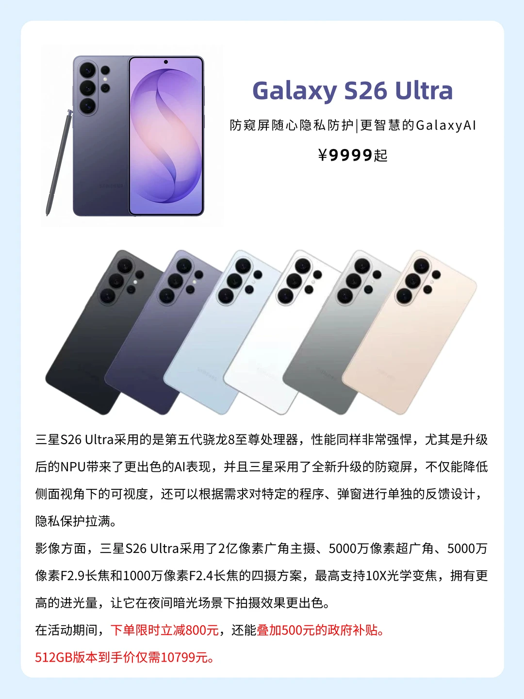 📱三星S26 Ultra 512GB