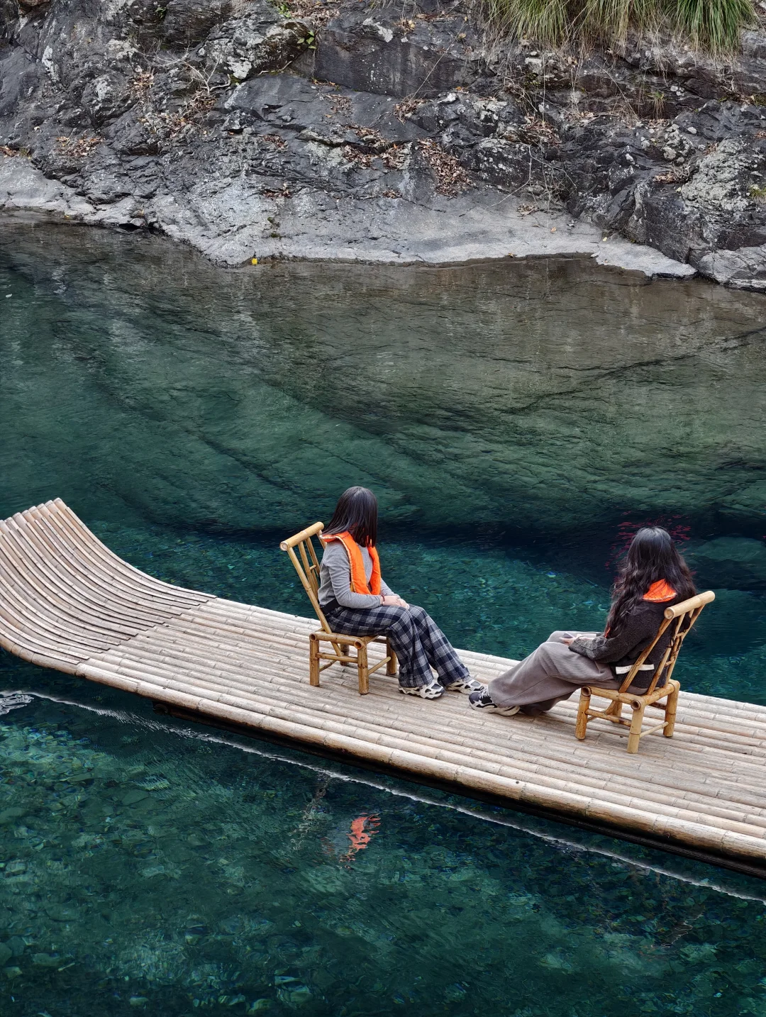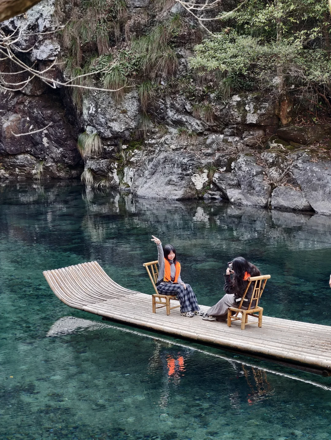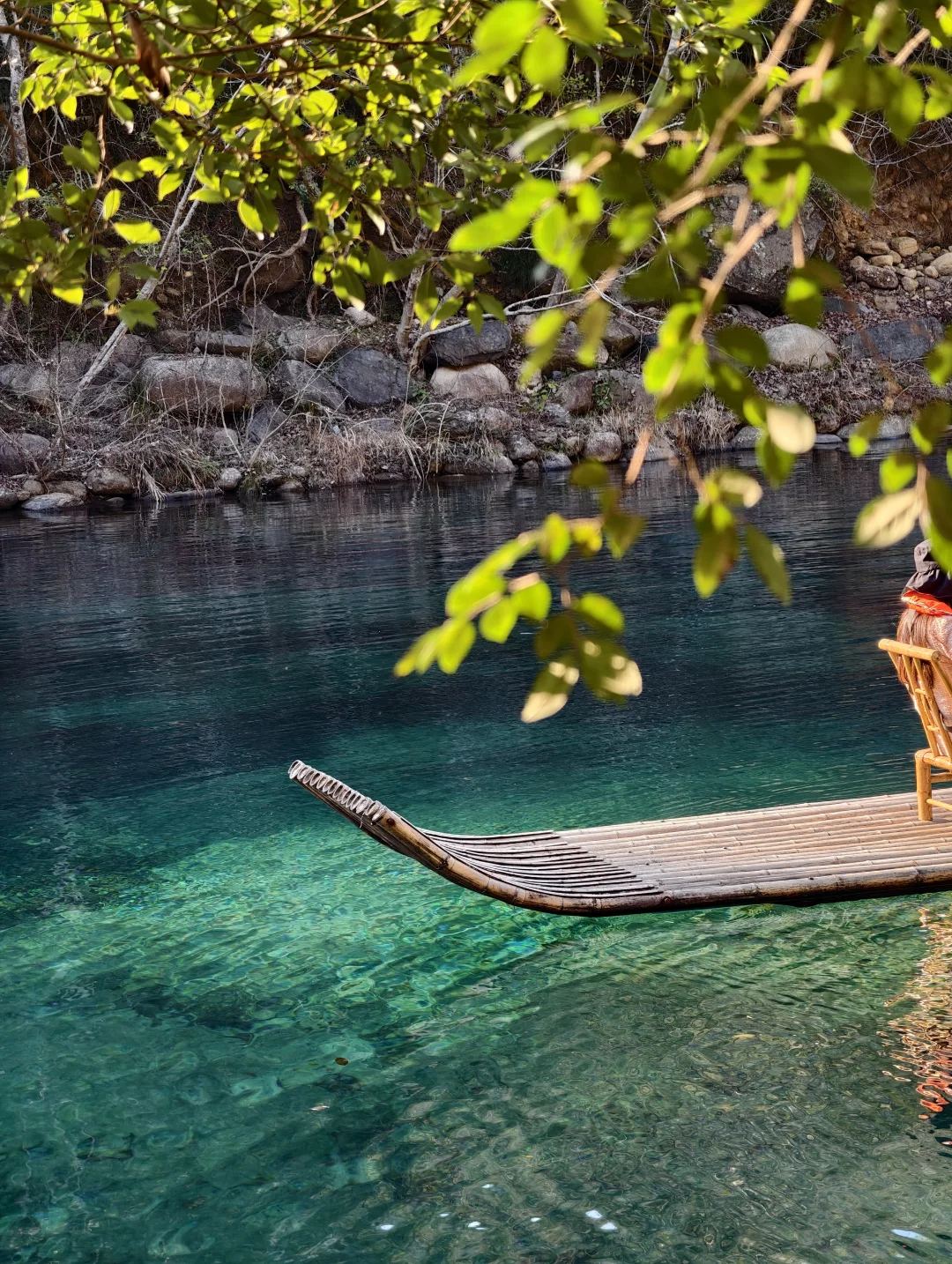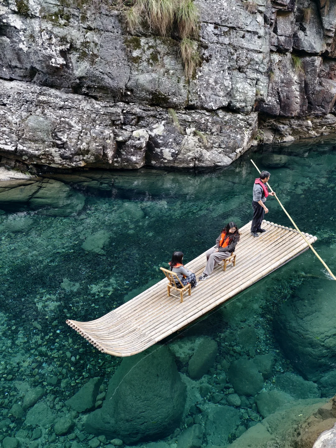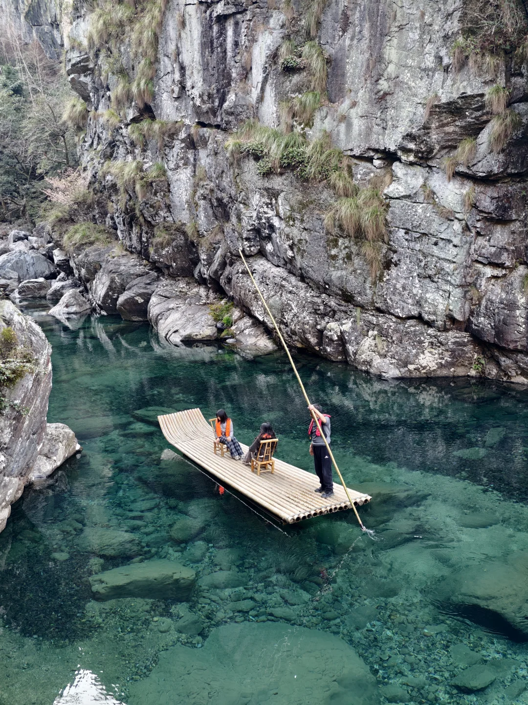 真的不是者仙本那!! 这是在安徽池州的牯牛降! 不用任何滤镜, 这里的泉水清澈见底到令人发指! 富含硒的山泉水, 阳光直射潭底、波光粼粼, 水面像流动的玻璃一样晶莹剔透, 竹筏像是漂浮在半空中一样!!! - 📍安徽池州石台县牯牛降 -