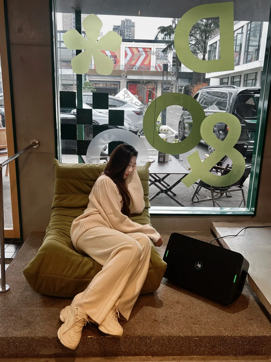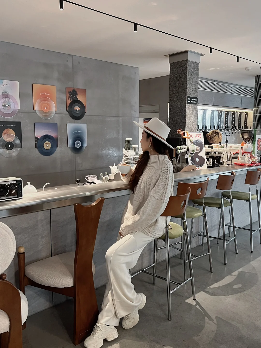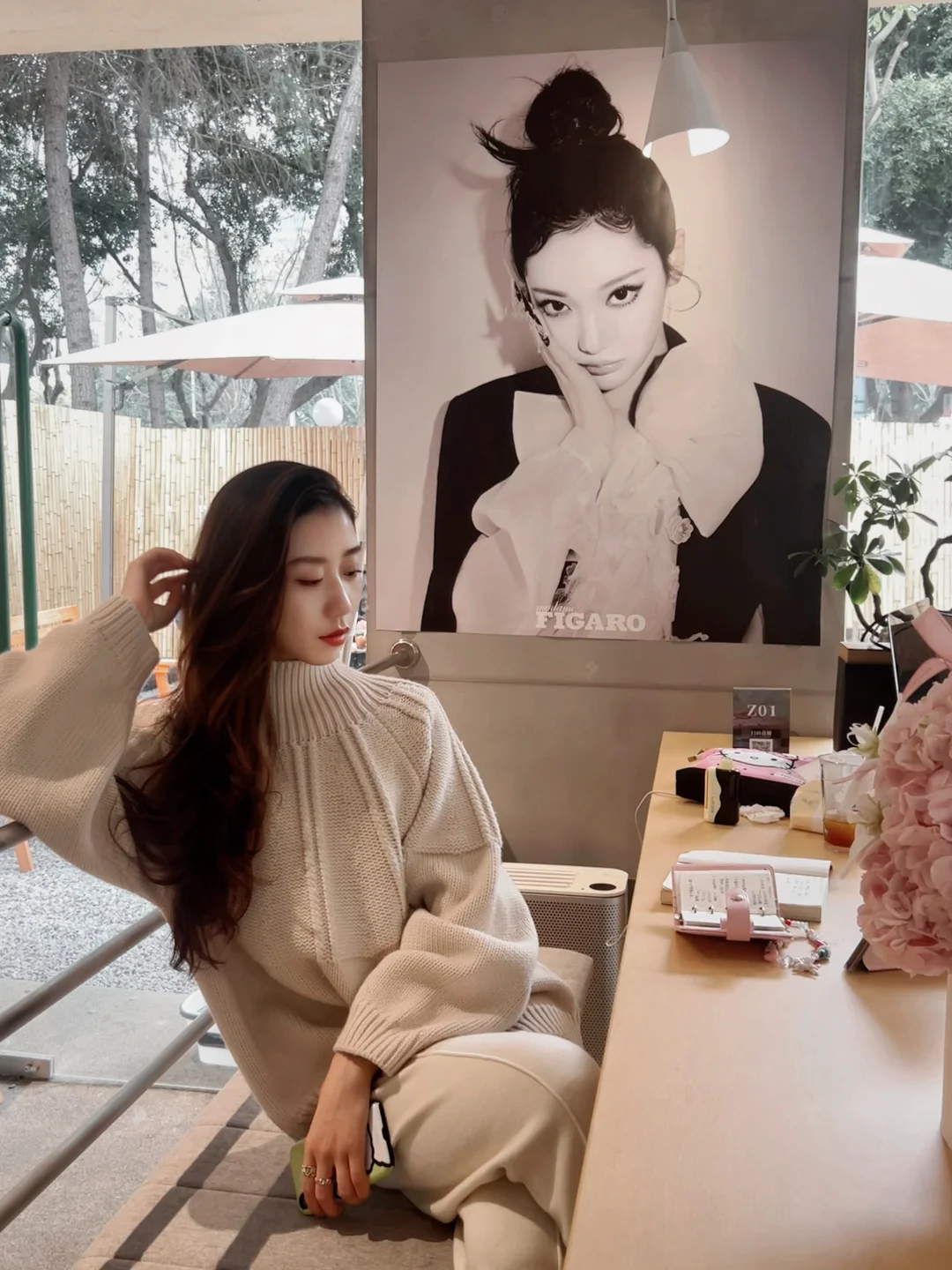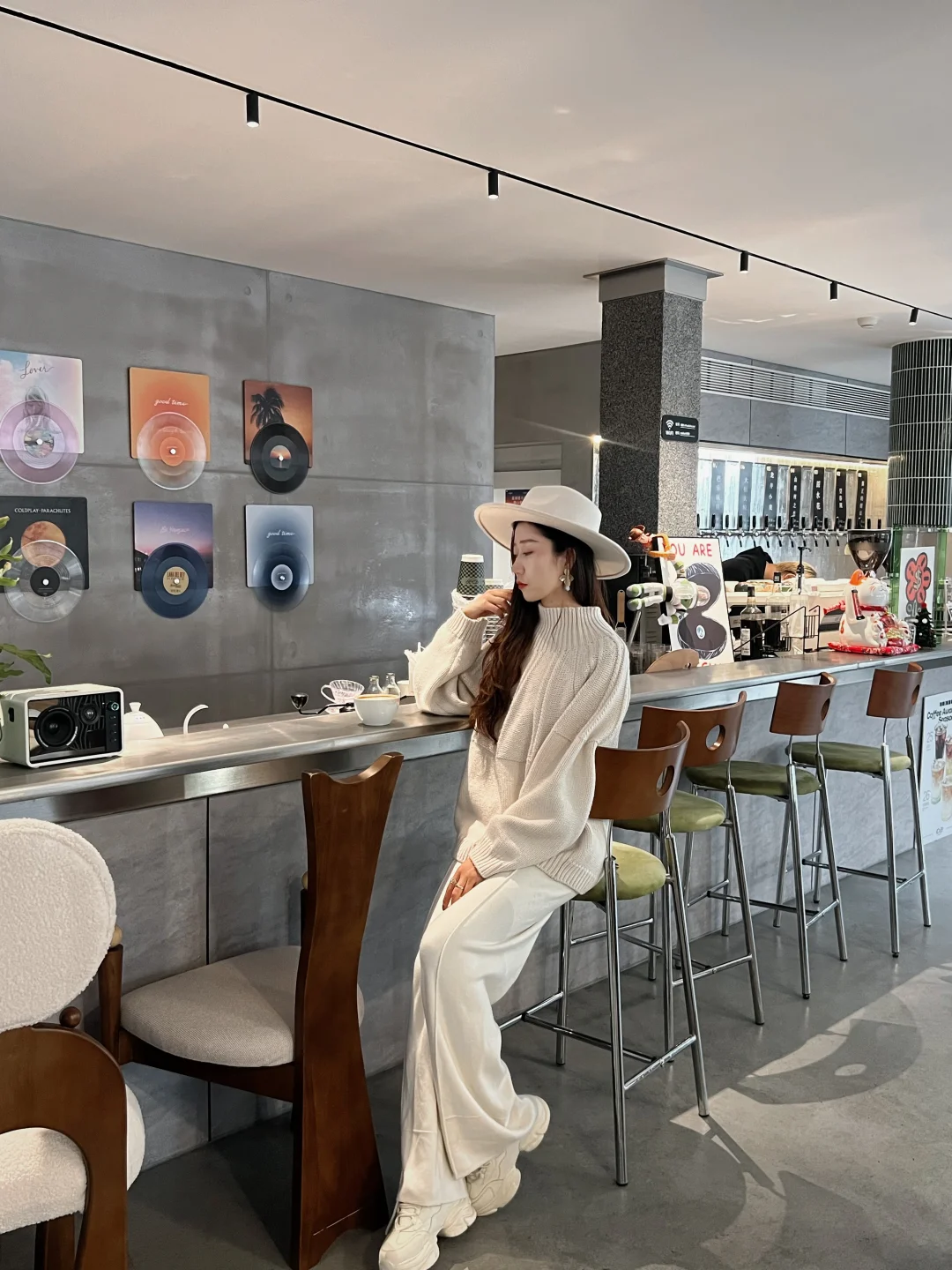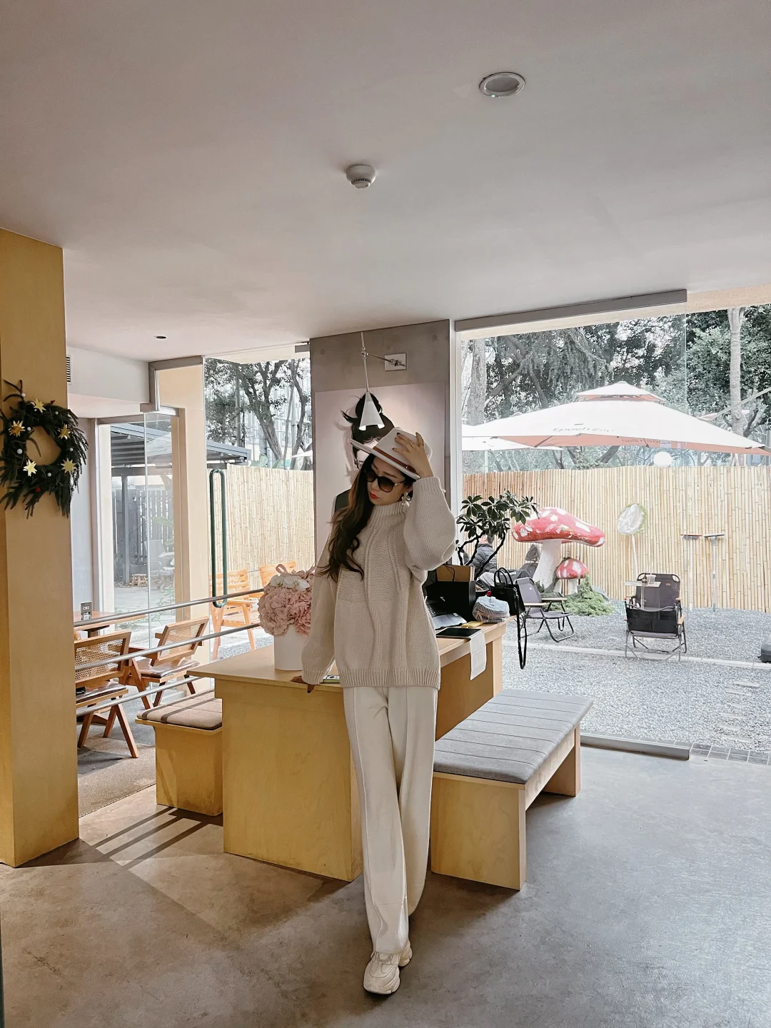 再搭一顶宽檐礼帽,整个人都像被春日的云轻轻包裹。