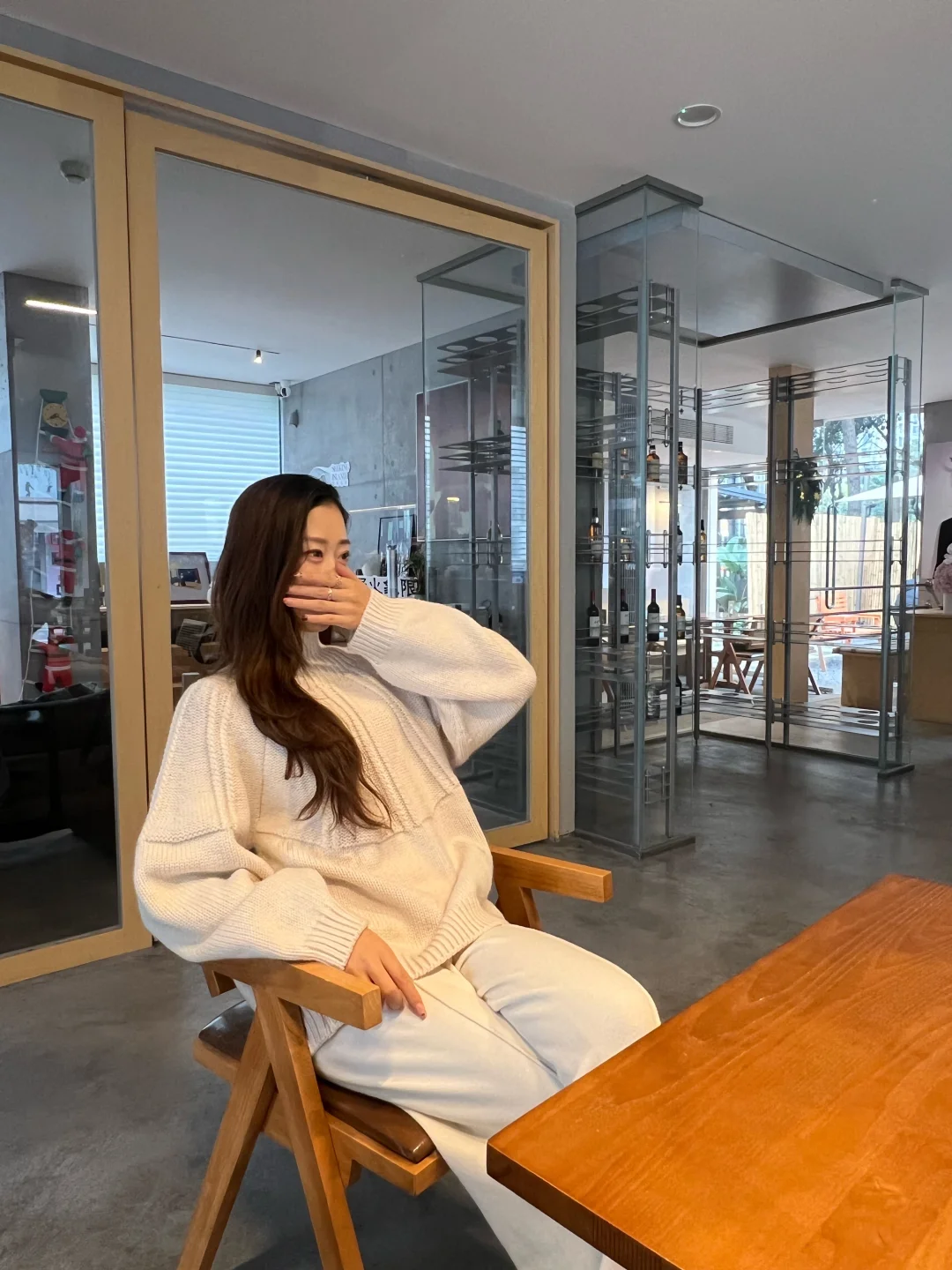 高领白毛衣裹着暖意,阔腿裤垂坠出松弛感,