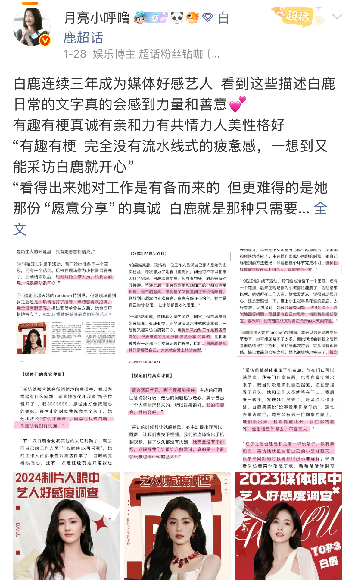 白鹿连续三年成为媒体好感艺人 在导演在同组演员在工作人员口中眼中她在工作中永远认真准备 有共情力性格好 待人真诚用心白鹿无论是对于朋友还是粉丝还是工作伙伴永远都是真诚用心 无愧于心只知道白鹿一直在走稳稳的上坡路 无论是线上线下永远生图能打无需精修 路人夸夸不停2026新增3️⃣高质量高国民度商务 2026播的《唐宫奇案》单集广告数👖史冠 连续8部剧全集有广🔥🔥🔥曝白鹿虞书欣绝交了/白鹿