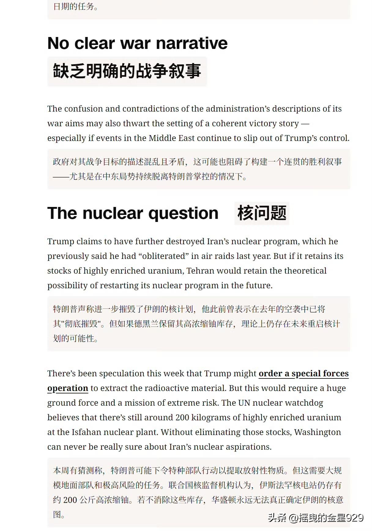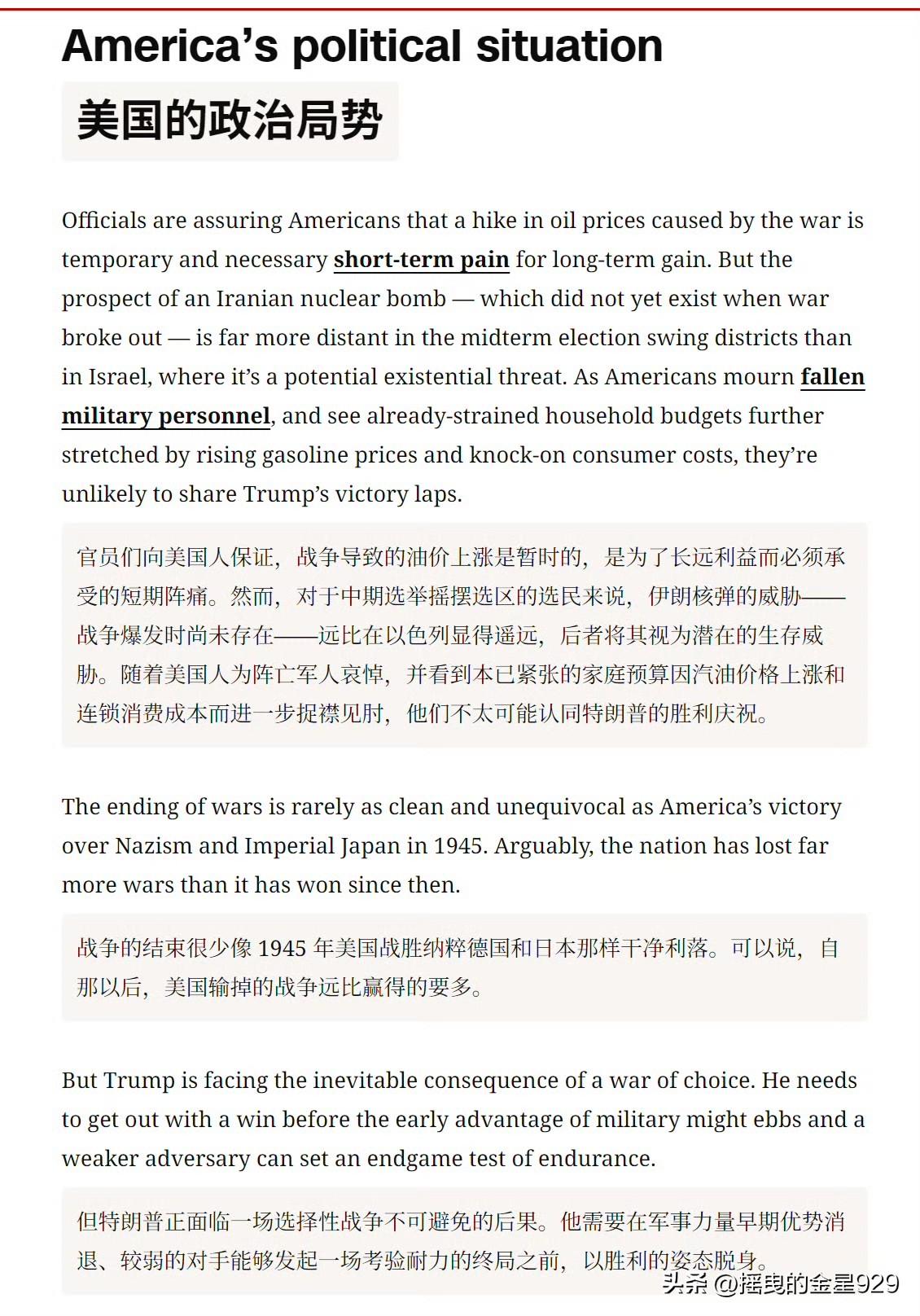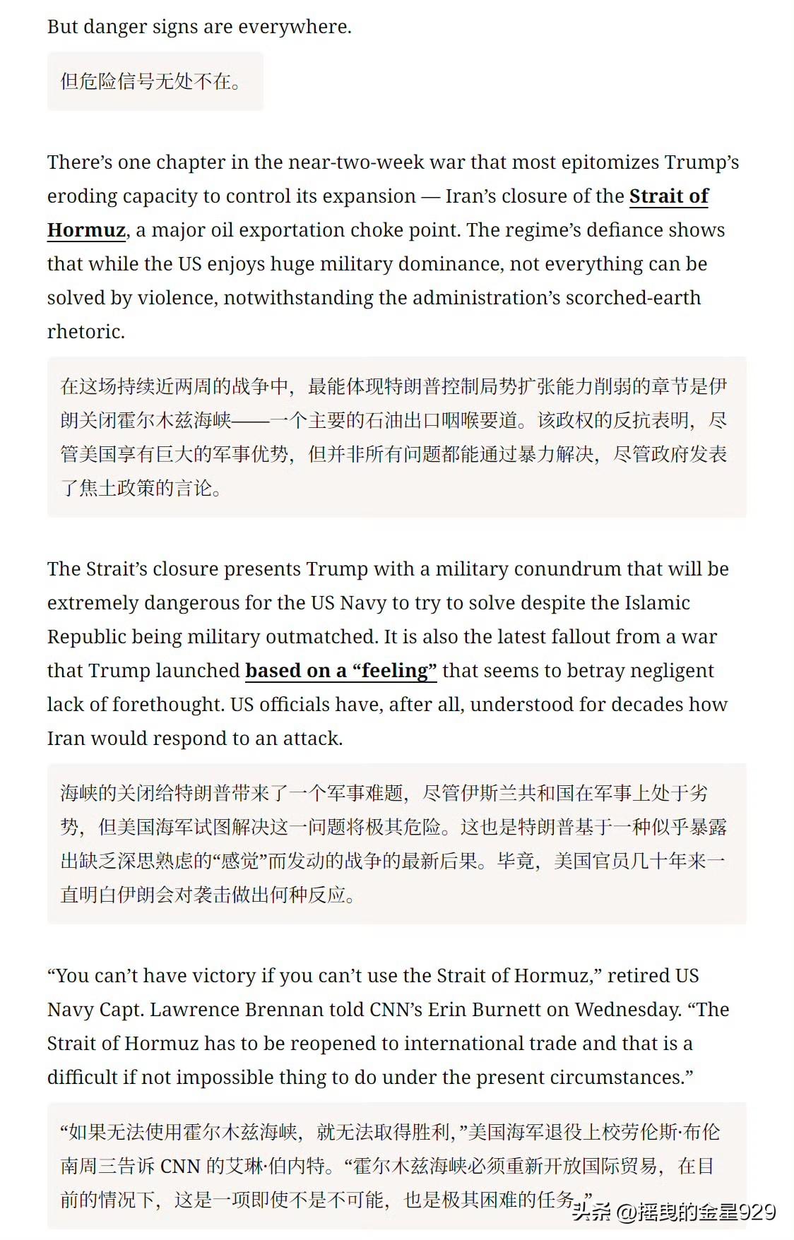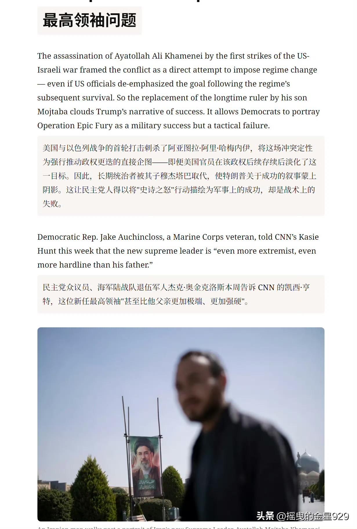 美媒:特朗普在伊朗战争中,截止到目前,已有七大败点。 一败:无法迅速打通霍尔木兹海峡。 二败:替代老哈梅内伊的是小哈梅内伊。 三败:以色列要打永无止境的战争。 四败:对其战争目标的描述混乱且矛盾。 五败:无法摧毁的伊朗核问题。 六败:伊朗人心在外部侵略下空前凝聚。 七败:民主党太坏了啊。