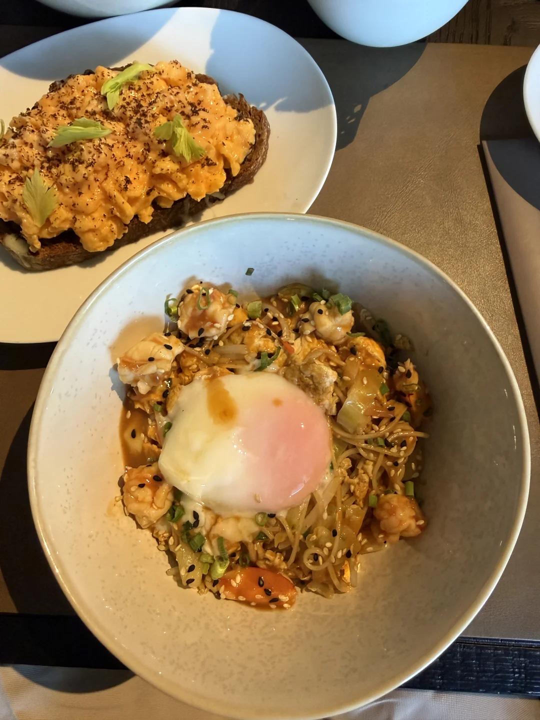 温泉蛋炒虾面🦐 烤猪颈肉 牛肉汤粉 虾仁稀饭…我不能再说了哈哈哈