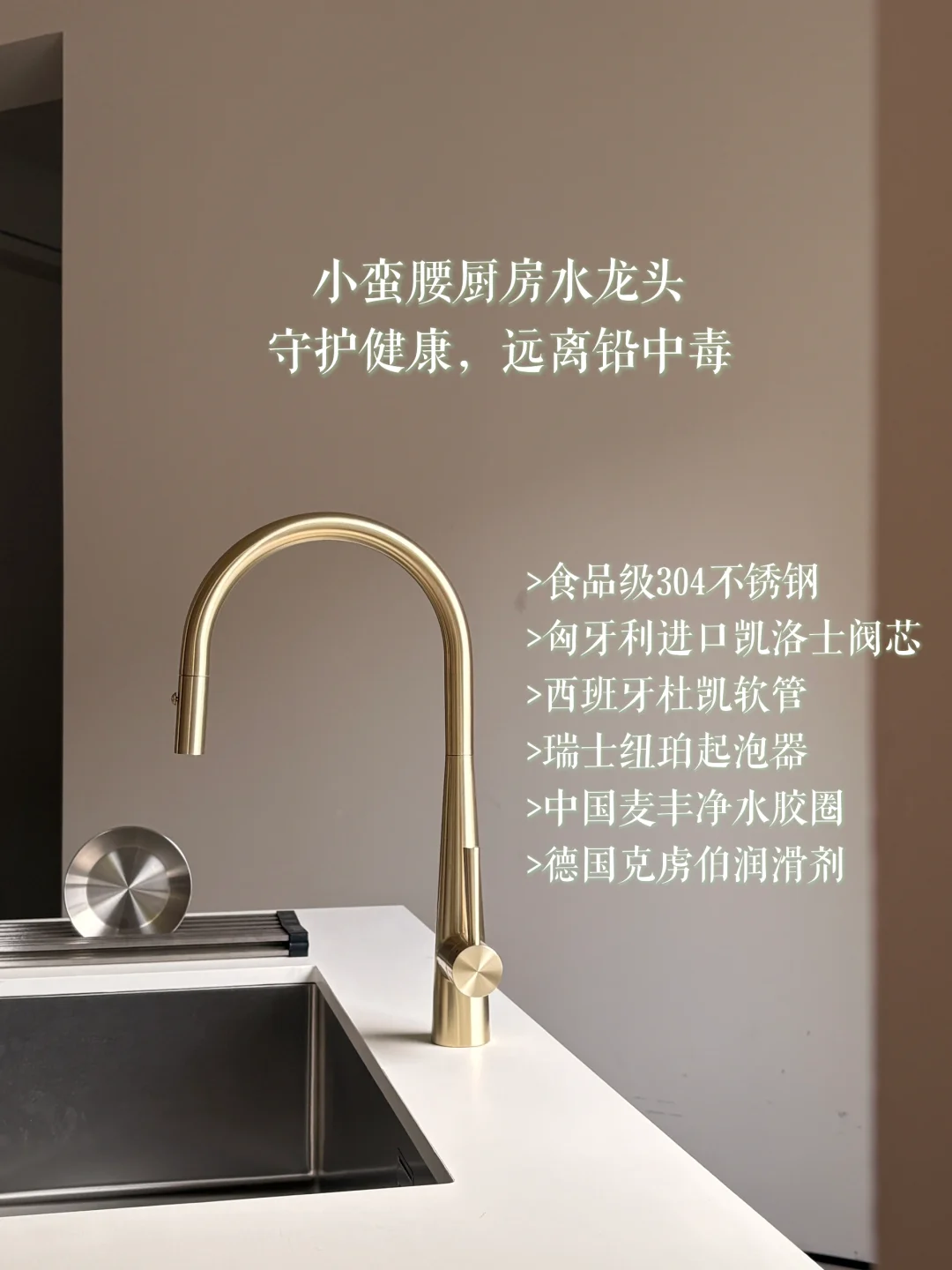 远山水龙头远山水槽水龙头厨房好物卫浴装修避坑 法兰金小蛮腰厨房龙头有货啦,有颜值也有健康 ✅PVD工艺金色镀层 ✅食品级304不锈钢 ✅匈牙利进口凯洛士阀芯 ✅西班牙杜凯软管 ✅瑞士纽珀起泡器 ✅中国麦丰净水胶圈 ✅德国克虏伯润滑剂 👍守护健康的厨房水龙头