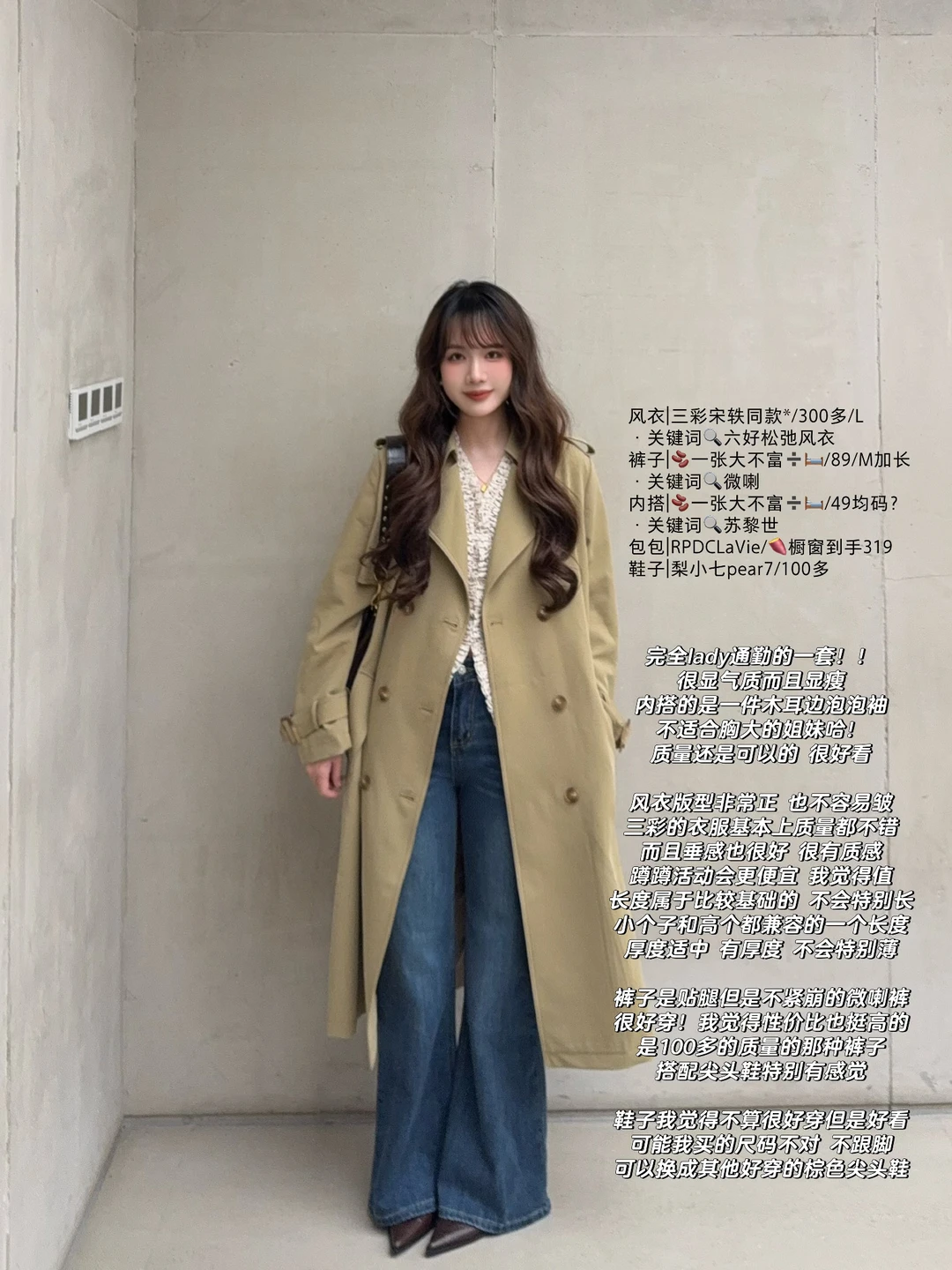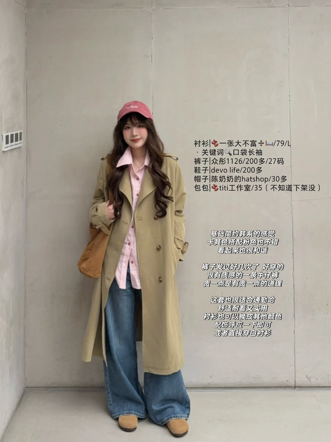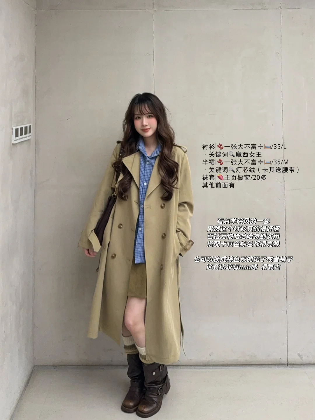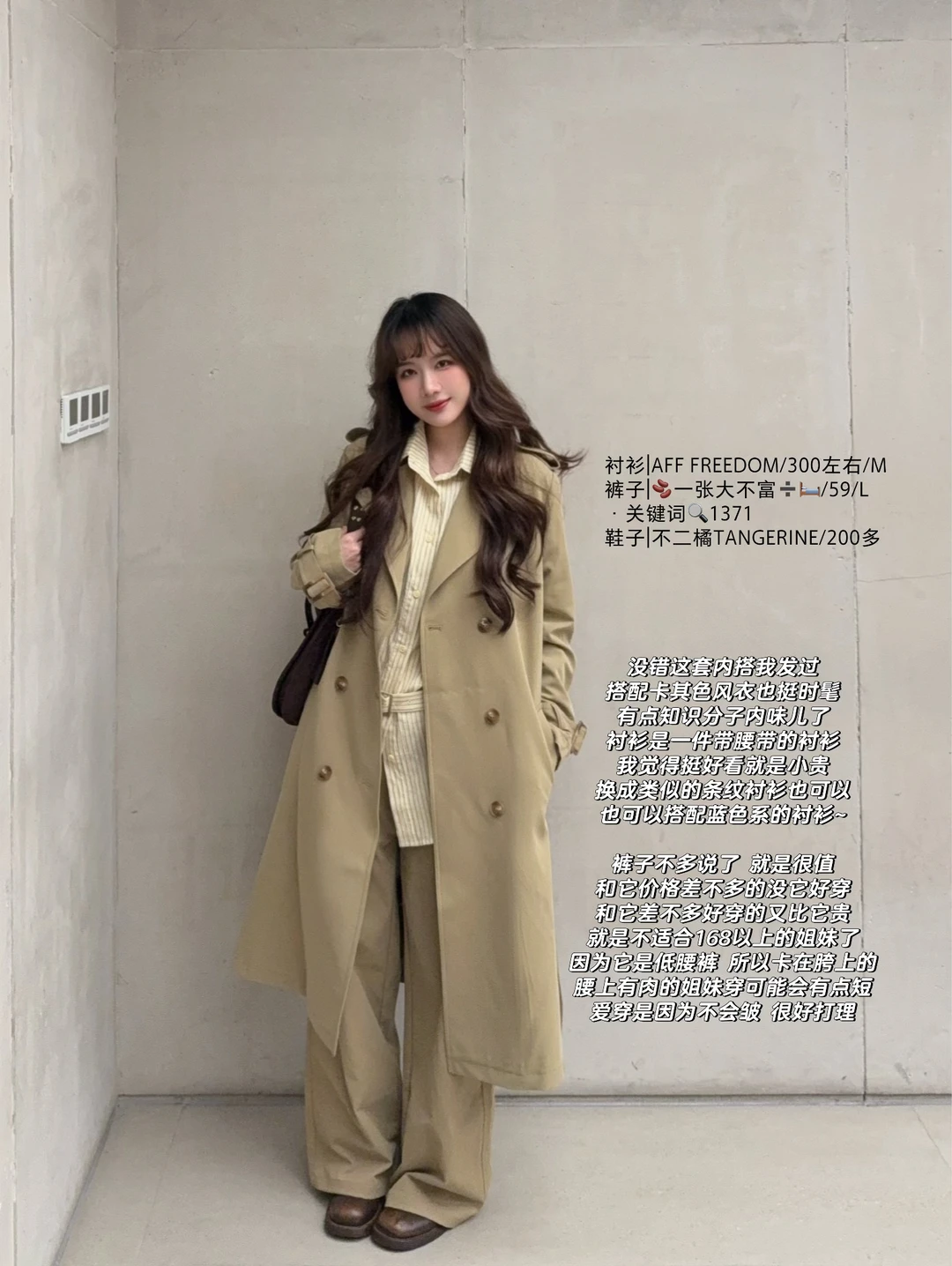 168/105左右 年年都来的卡其色风衣穿搭思路 虽迟但到! 想想各种卡其色风衣 加起来也出了20套穿搭了哈哈哈 很耐穿的基础款~穿很多年都不会过时! 大家有类似的外套也可以参考搭配 理性种草~ (长短卡其色风衣都适用哈 没有太大区别) 总体还是以实用基础舒适为主 加入了一点点出片的元素~