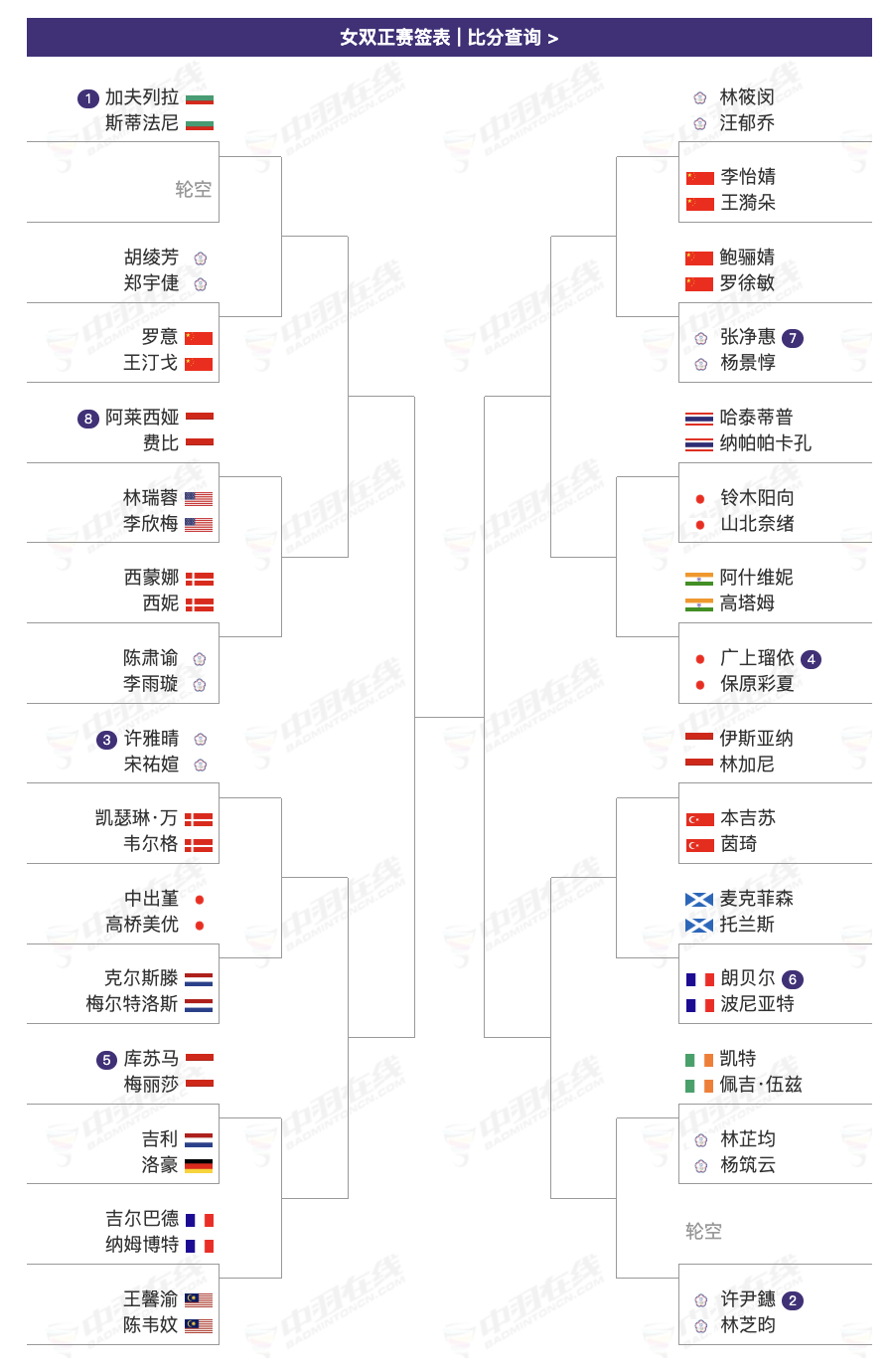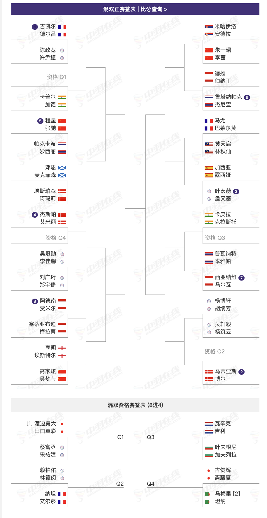 混双:程星/张驰🇨🇳 vs 🇹🇭帕克卡波/沙西丽高家炫/吴梦莹🇨🇳 vs 🏴亨明/埃斯特特朱一珺/李茜🇨🇳 vs 🇷🇸米哈伊洛/安德拉中国羽毛球队