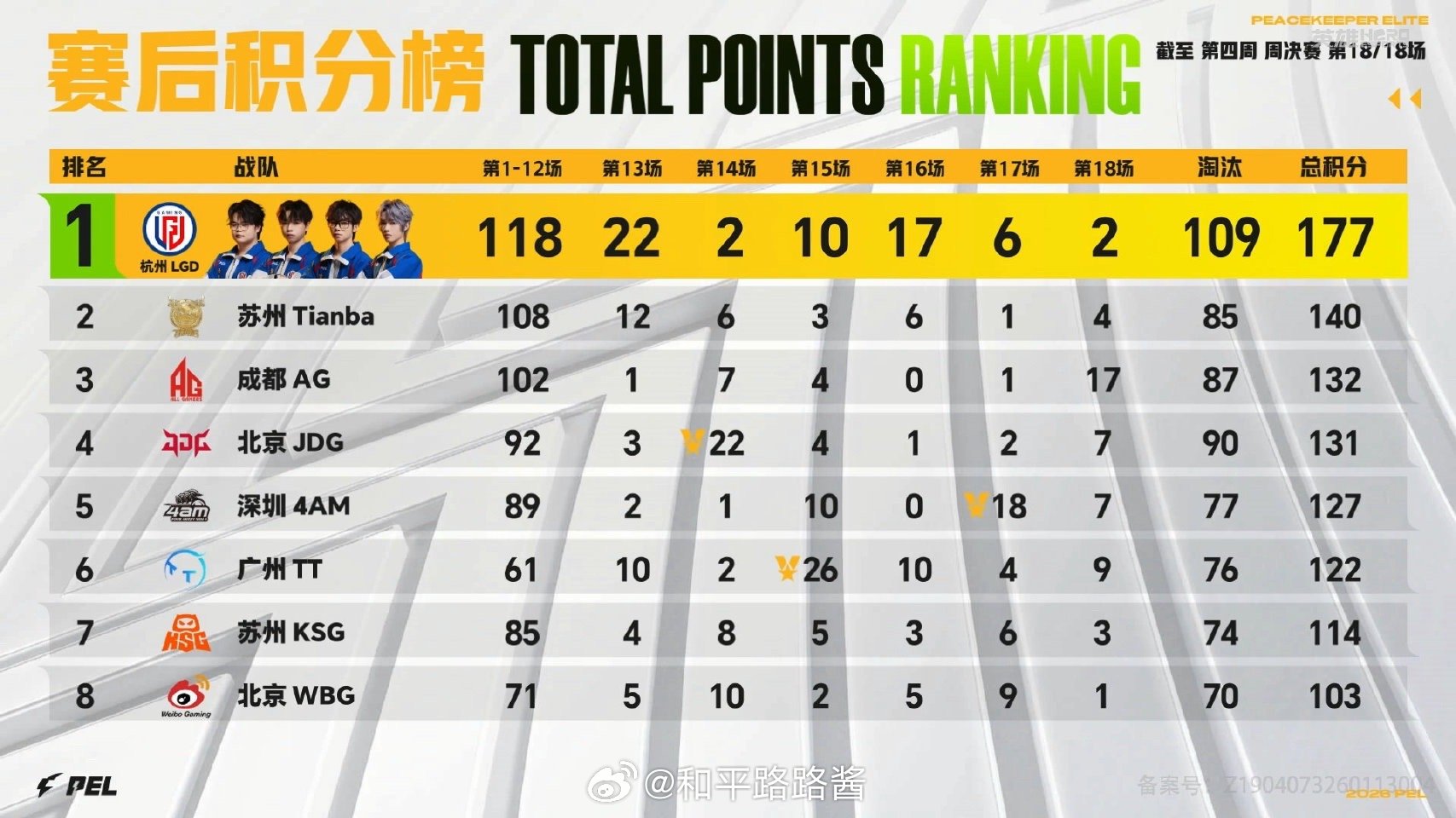【2026 PEL 春季赛】Week4 Day4 第六场 LGD第四周周冠军PEL春季赛第四周冠军之夜