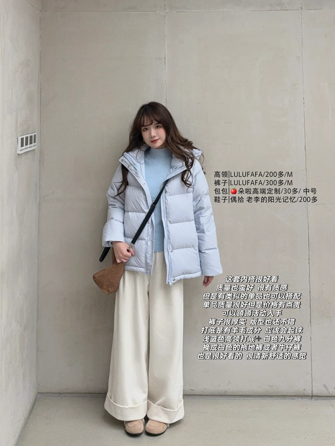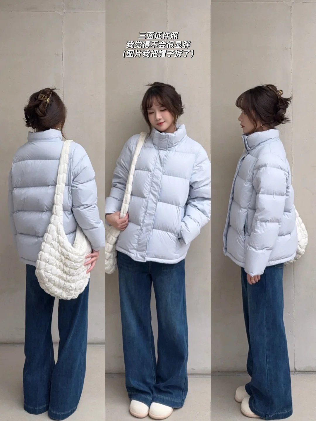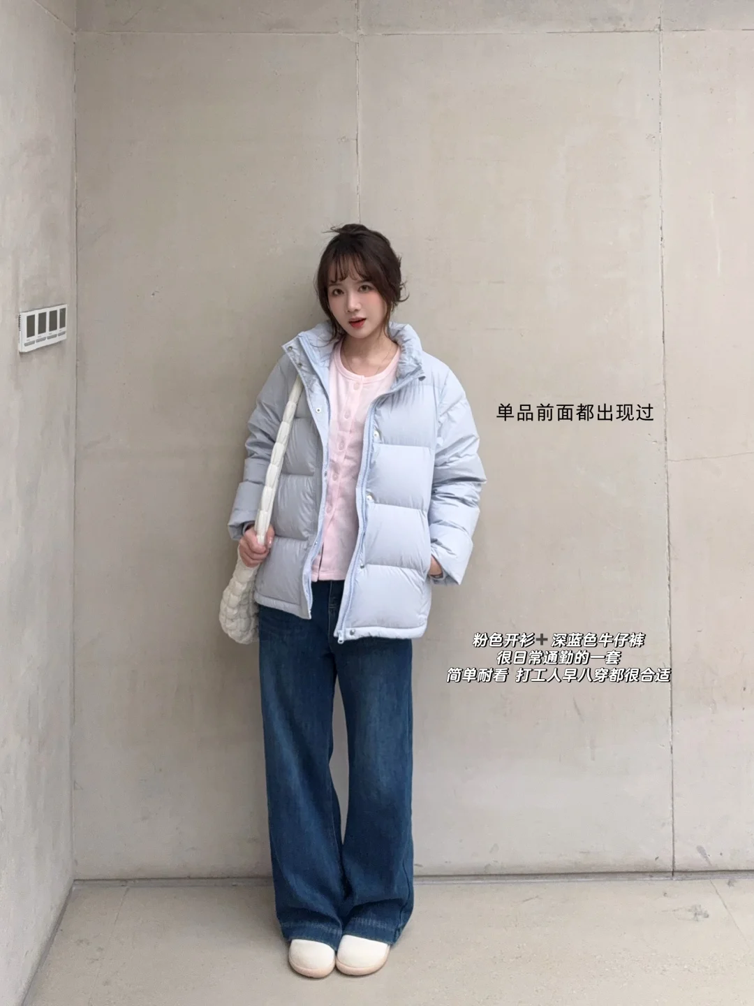 蓝色短款羽绒服穿搭思路来也