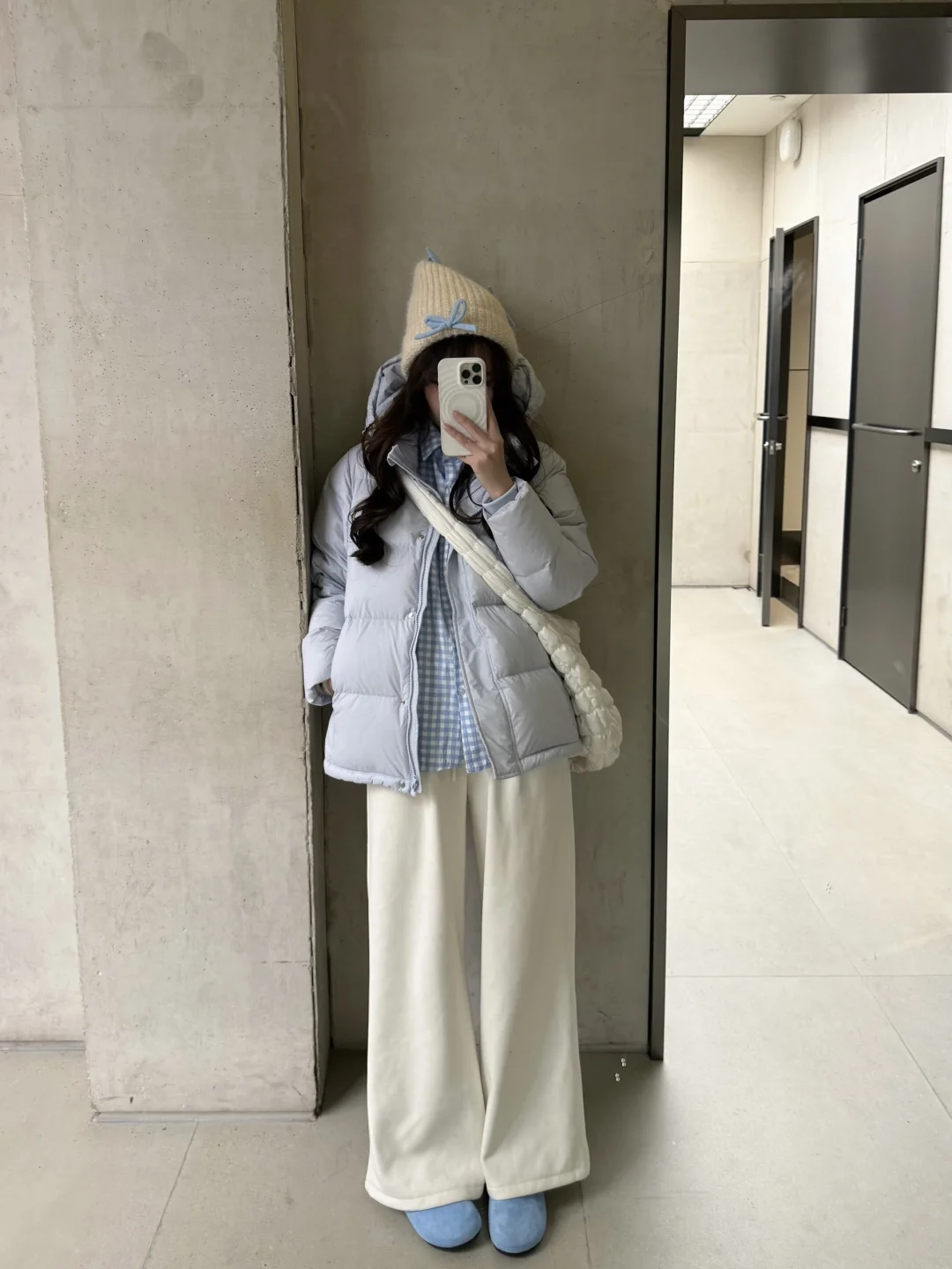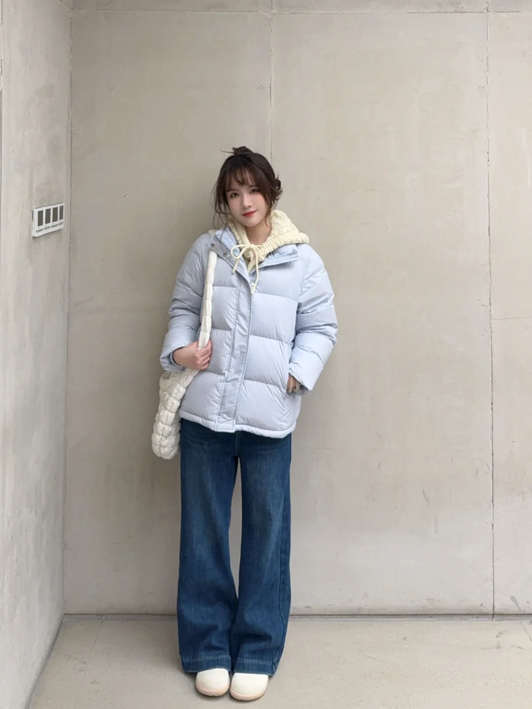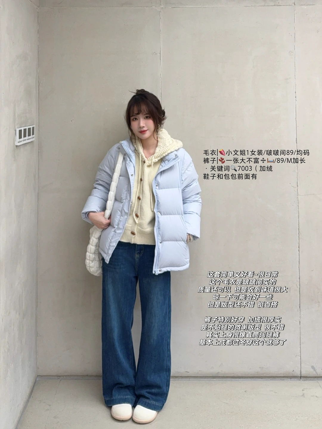 蓝色短款羽绒服穿搭思路来也