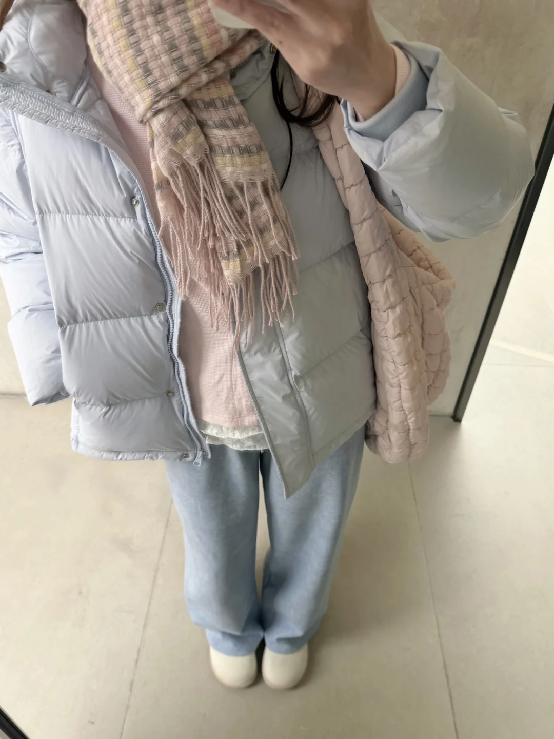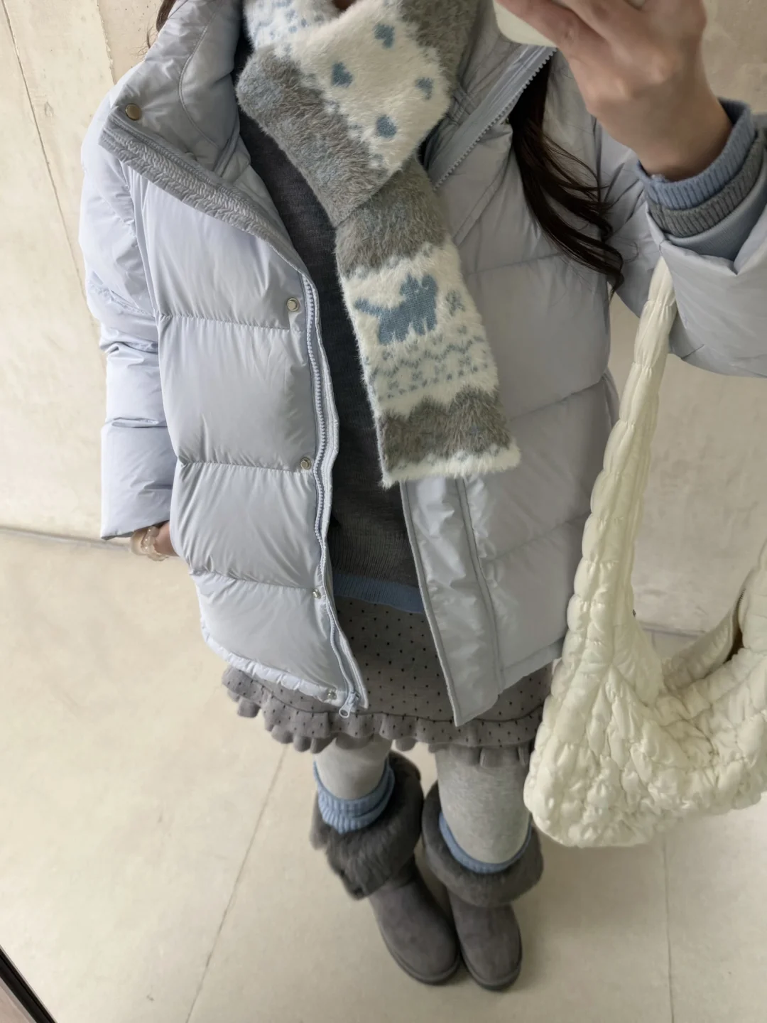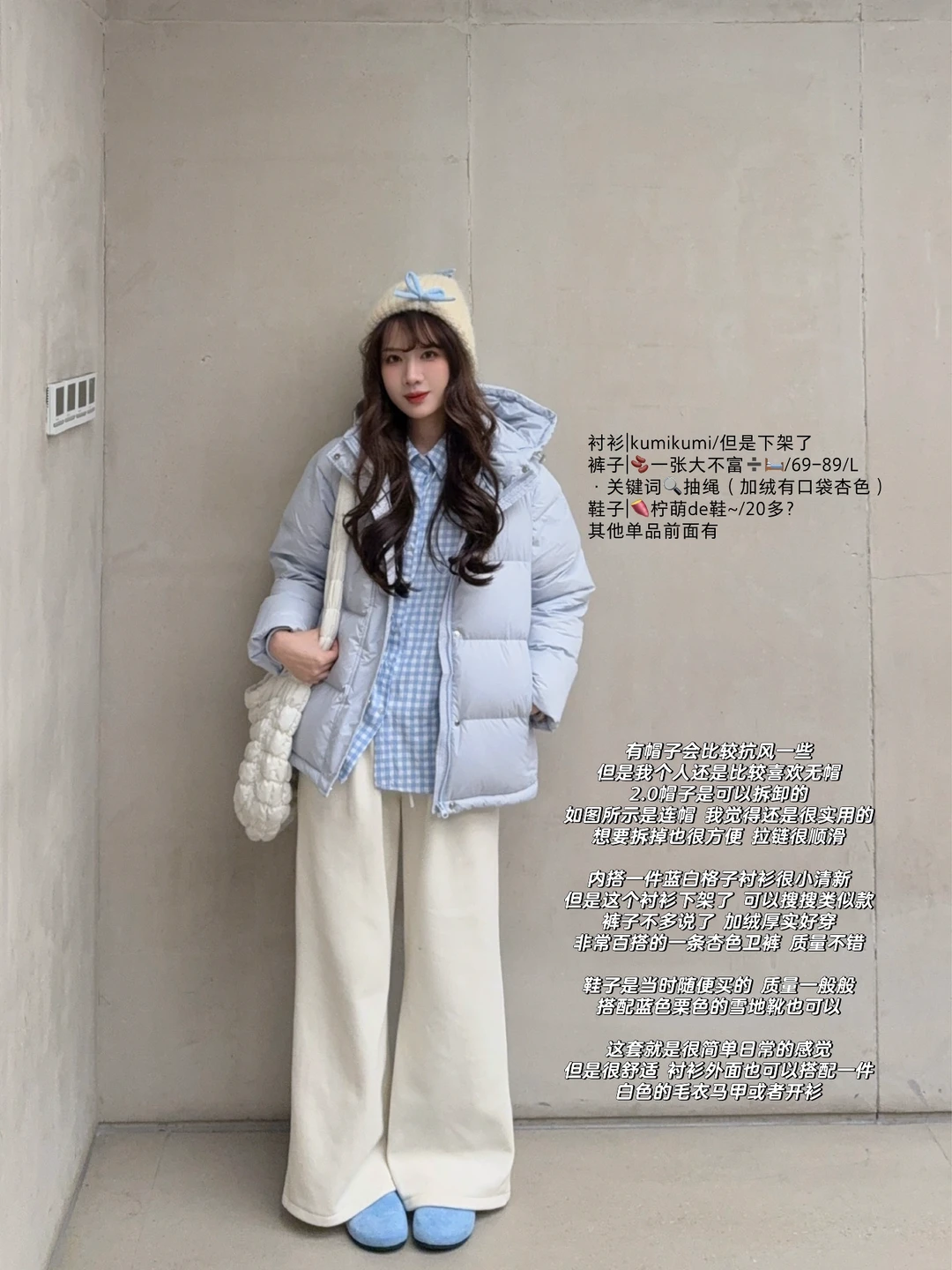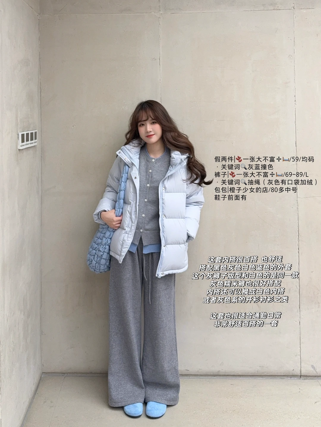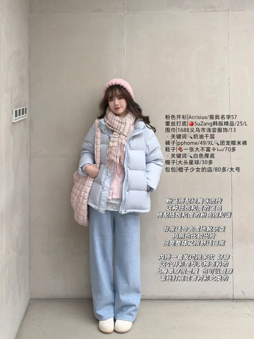 大家也可以搭配自己的蓝色羽绒服~