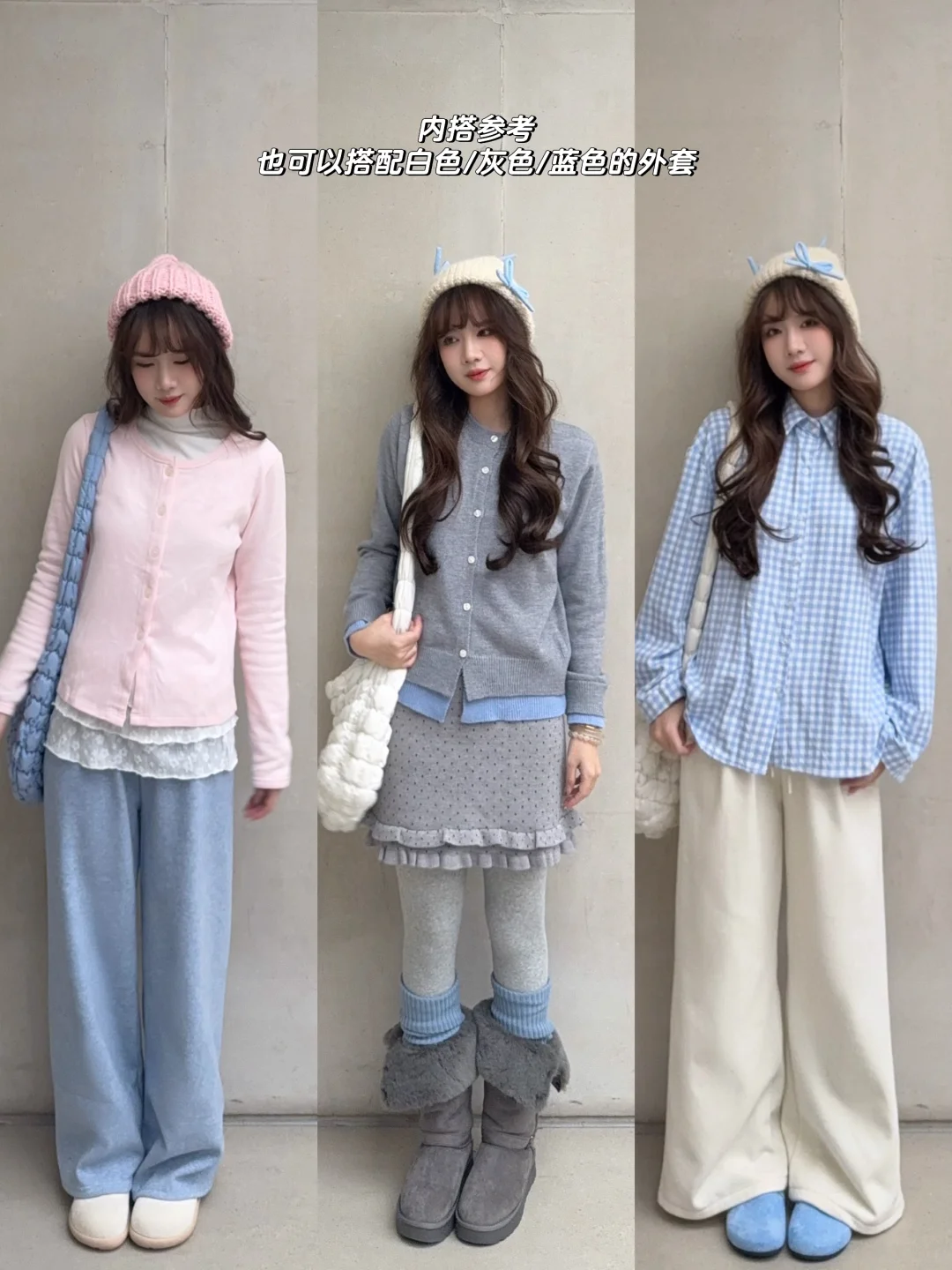 奶蓝色搭配白色灰色粉色都挺好看