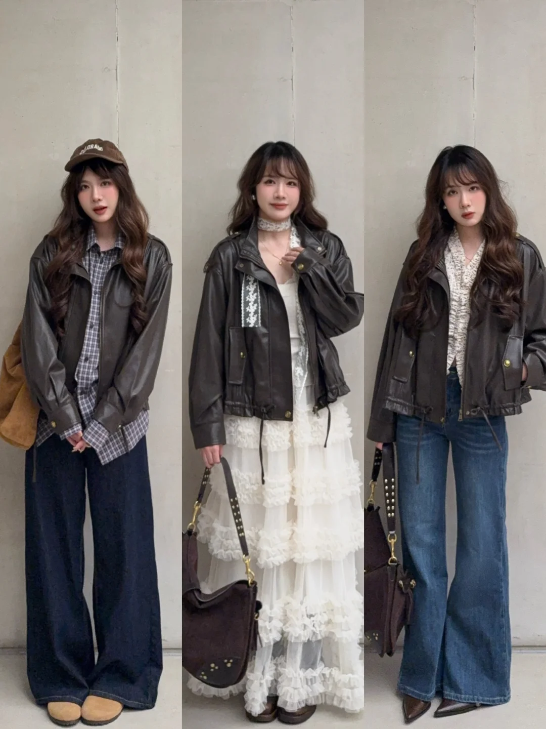 分享7️⃣套棕色皮衣穿搭思路🍪🧺˚⁎⁺˳
