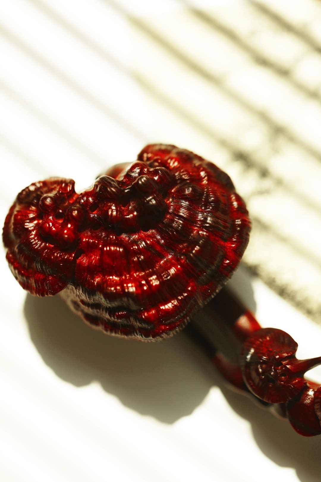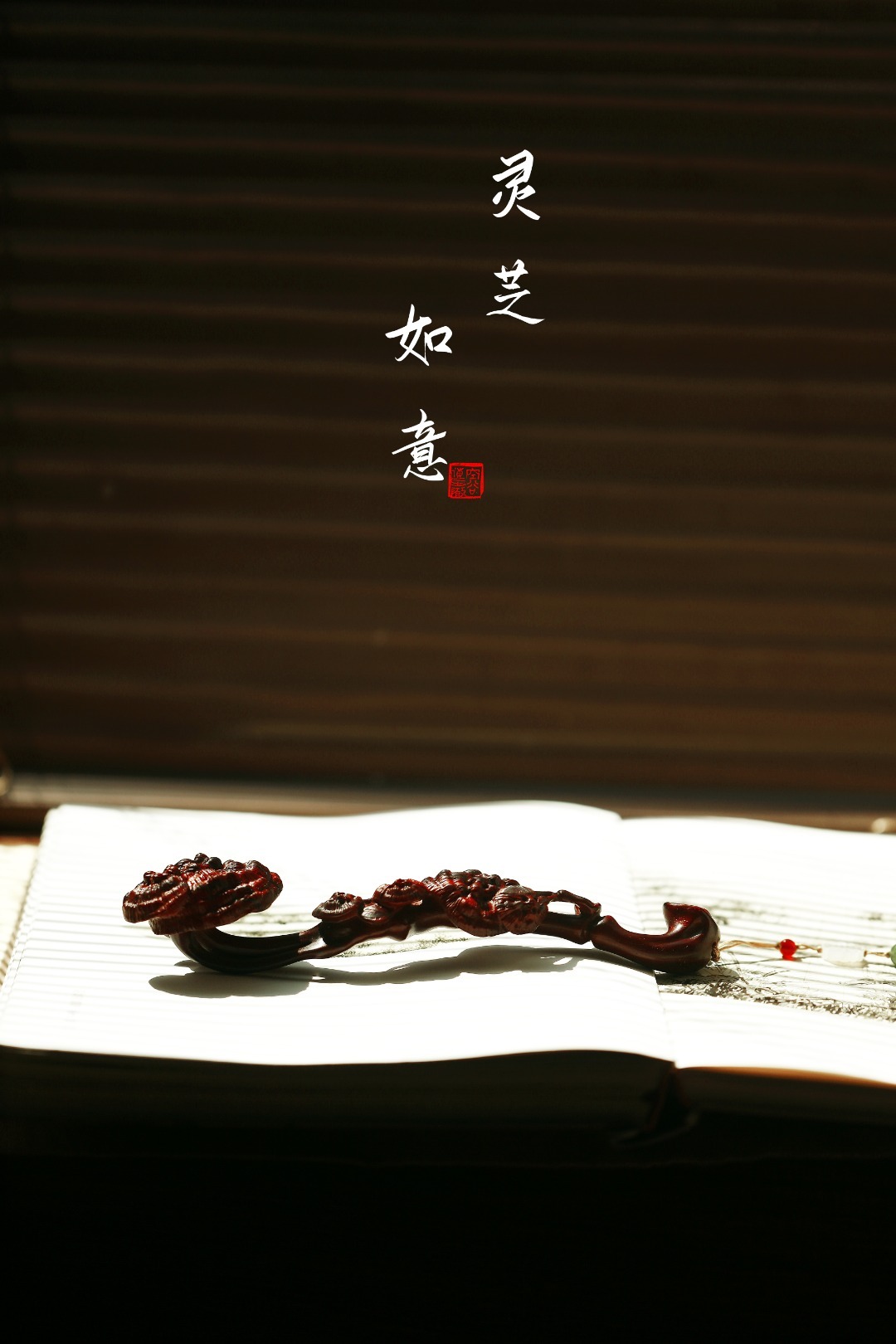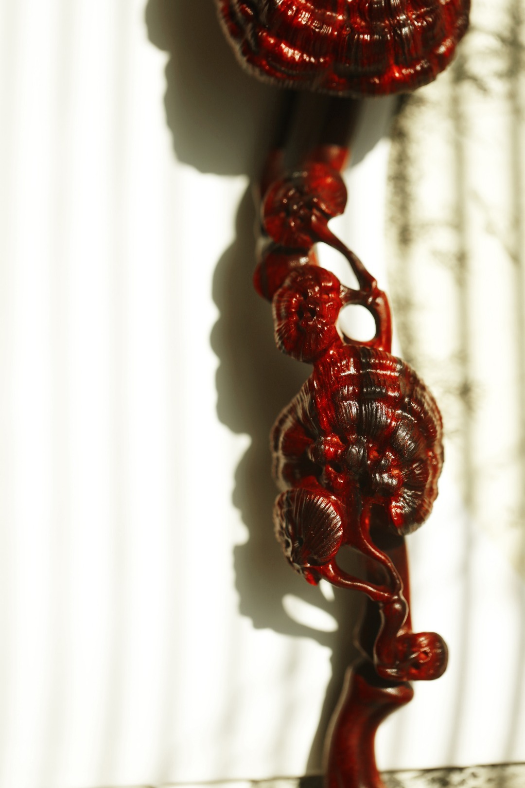 小叶紫檀 | 灵芝如意紫檀雕琢而成,柄首呈灵芝状,雕刻纹理如流水似流云,细腻精致