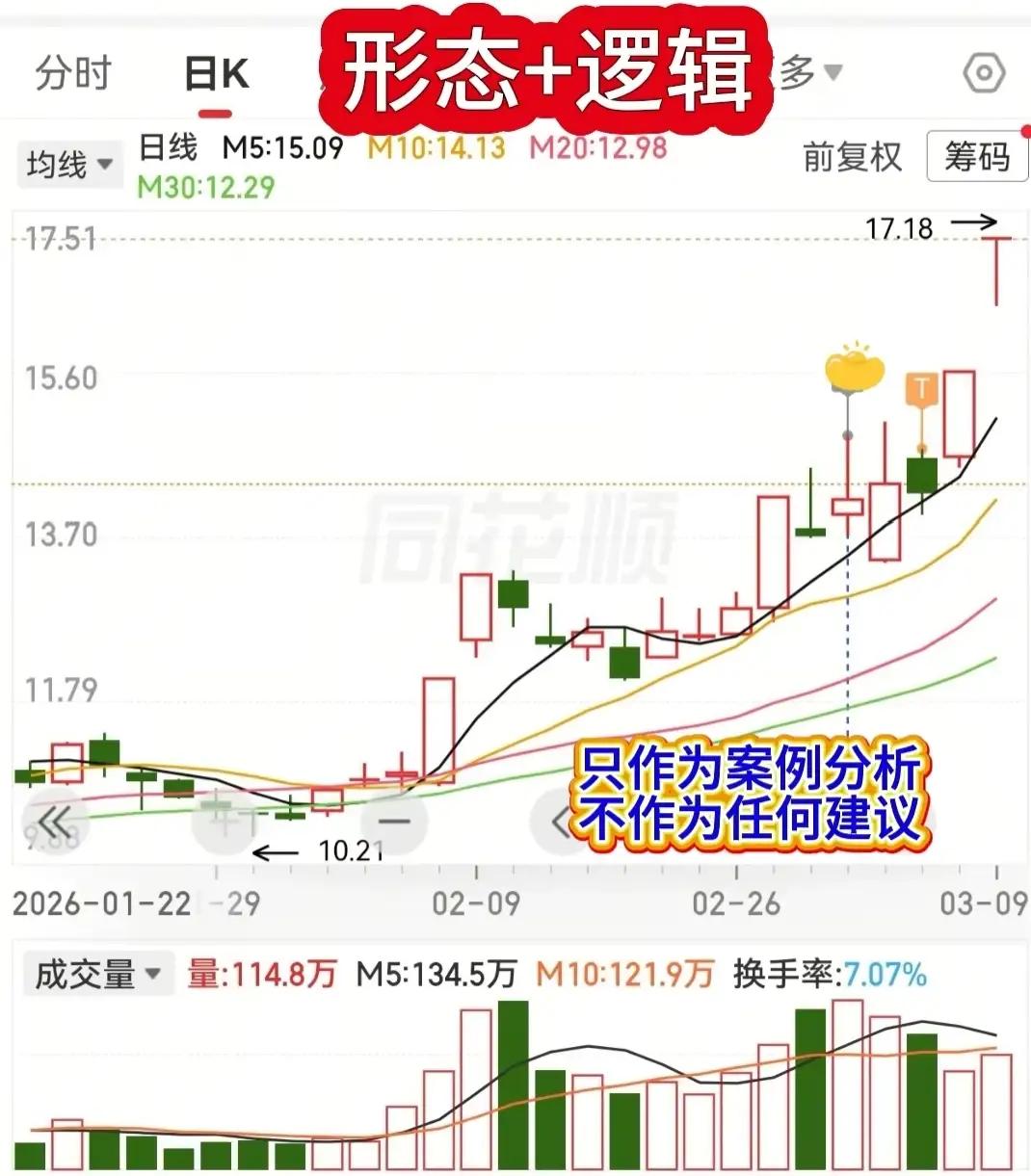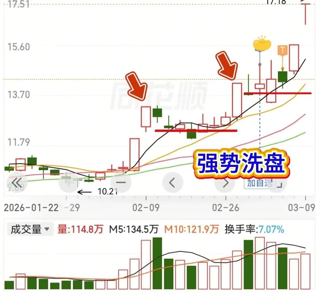散户常遇“刚买就跌、割肉即涨”,多是主力强势洗盘。带涨停基因的个股,洗盘后易启暴力主升浪。 案例:某股从10.21元底启动,先拉涨停埋“基因”,后横盘震荡——关键支撑位反复回踩、量能忽大忽小,制造“乏力”假象,典型强势洗盘。 区分洗盘vs见顶:洗盘为清浮筹(后续能涨回),见顶为主力出逃(阴跌难返高)。 一、识别涨停基因:历史多次涨停/大阳线→股性活、有主力关注,具爆发力。案例启动期多涨停,均线多头(5/10/20日线向上)、量能同步放→主力已进场。 二、强势洗盘3特征: 1. 不破关键支撑:不有效跌破涨停启动平台/重要均线(如10/20日线); 2. 量能规律:先放(造恐慌)→后缩(抛压清)→再温放(洗盘结束信号); 3. 题材逻辑未变:背靠算电协同、虚拟电厂等热门赛道,政策+景气支撑,基本面无恶化。 三、盈利核心:形态+逻辑 - 形态:用K线/均线/量能判主力意图,找买卖点; - 逻辑:研题材/基本面/行业趋势,避纯炒作垃圾股。案例洗盘后从13元拉至17.18元,数日涨超30%,验证有效性。 注:仅案例分析,不构成投资建议,股市有风险,需学交易知识。