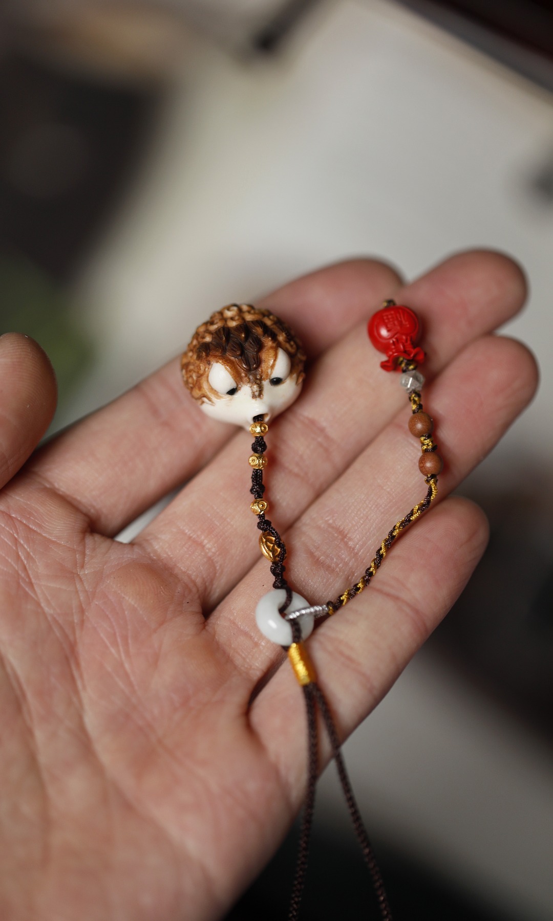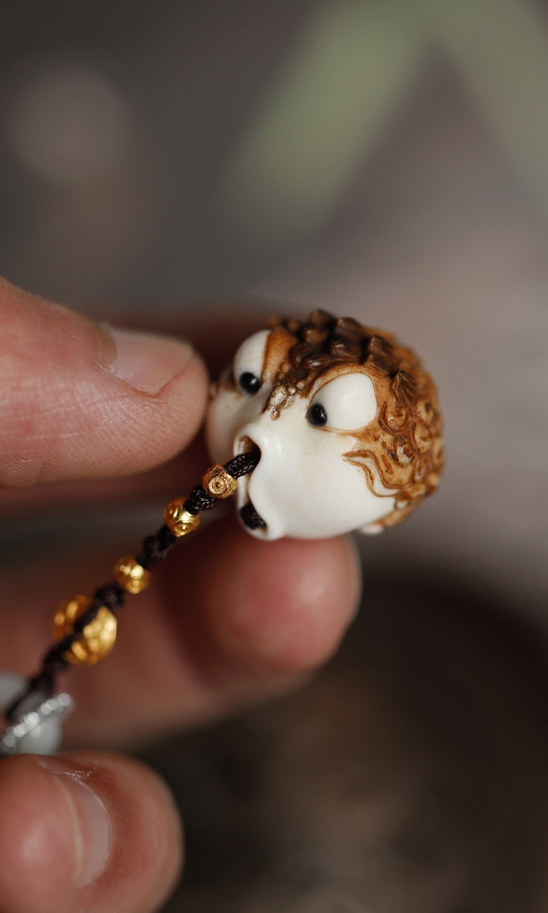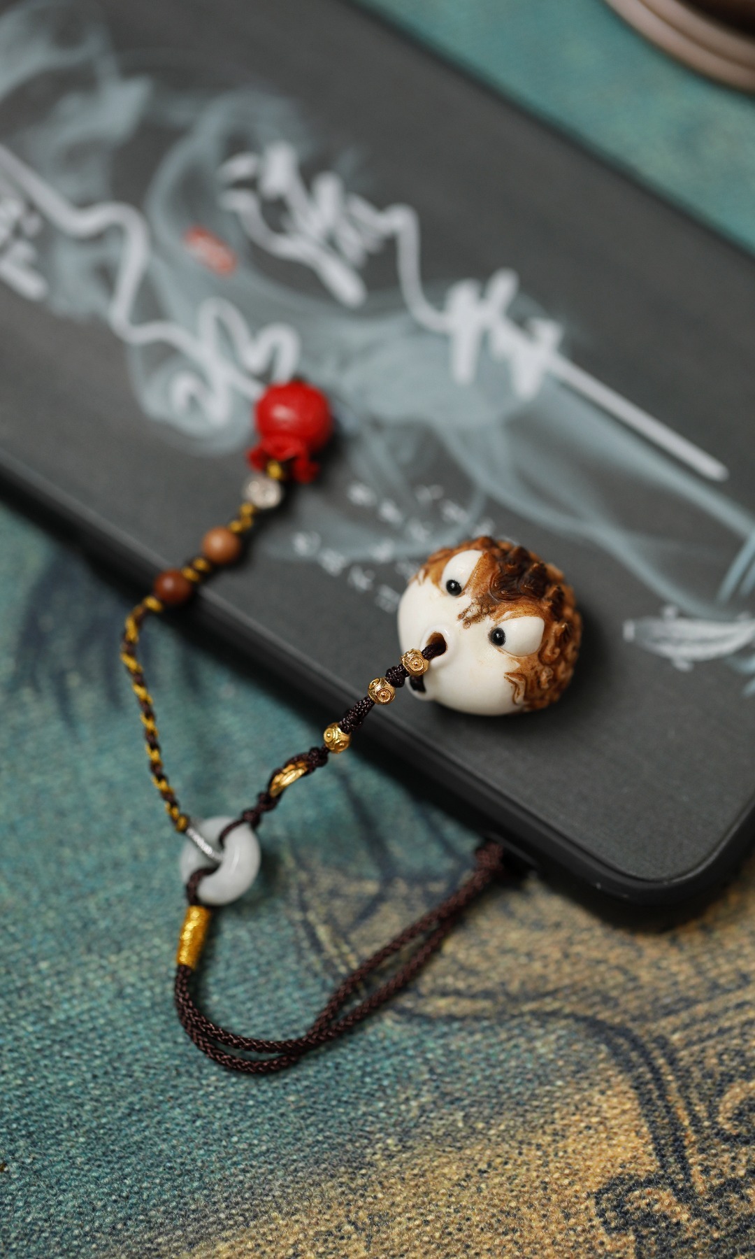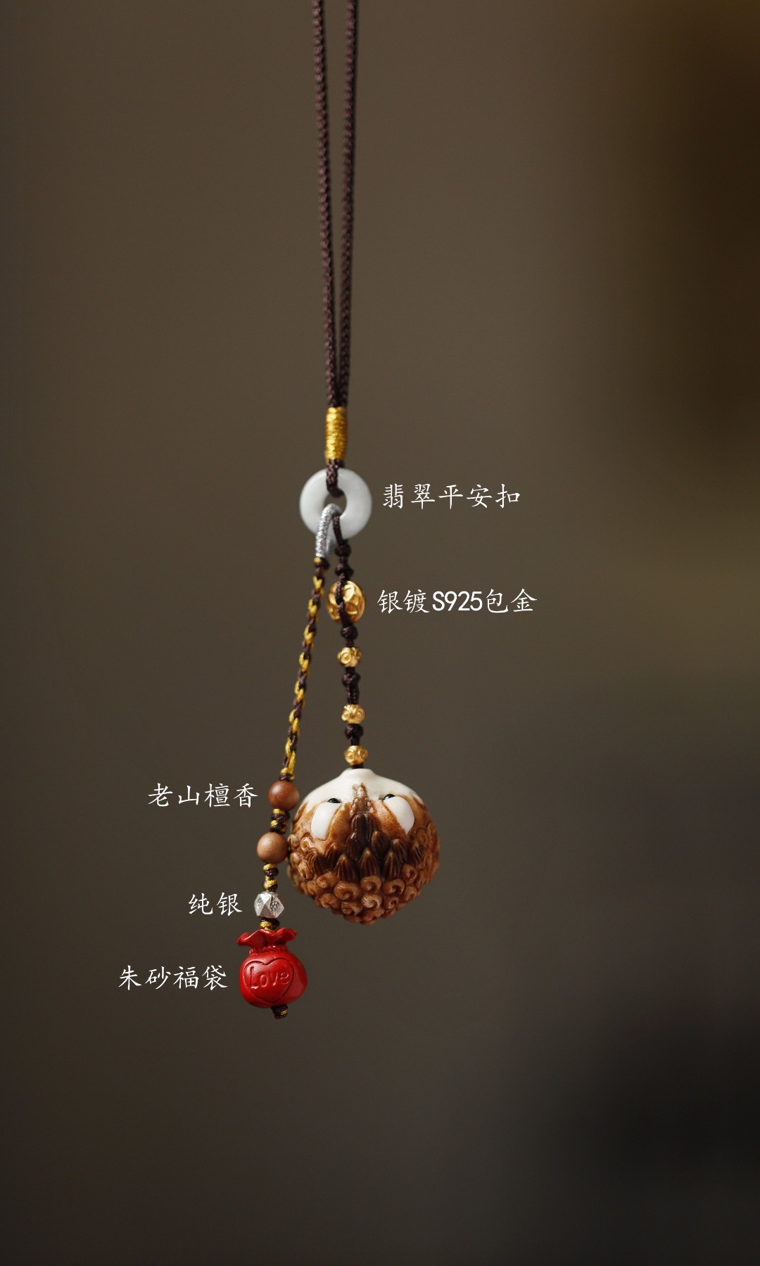 取材鹿角,植物根付,名家手刻,金蟾吸金,观之有趣,玩之怡然,悬挂古意横生,别致独特。