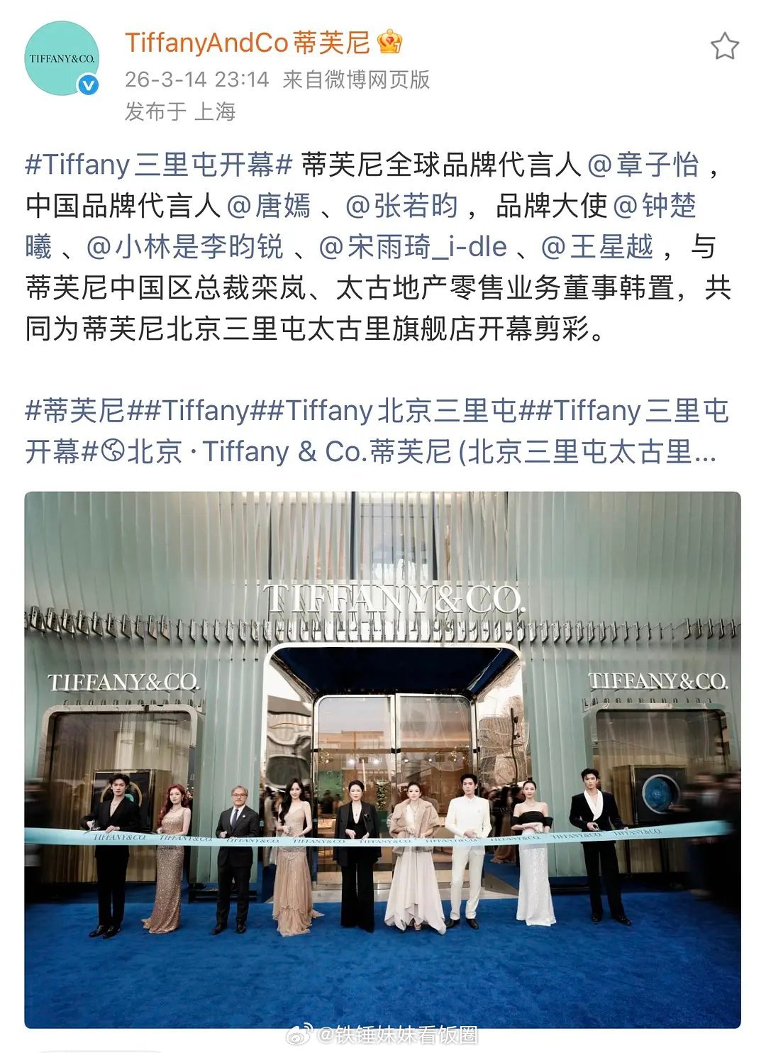 Tiffany活动,唐嫣原本稳稳站C,不知怎么变成了唐嫣、章子怡双副C