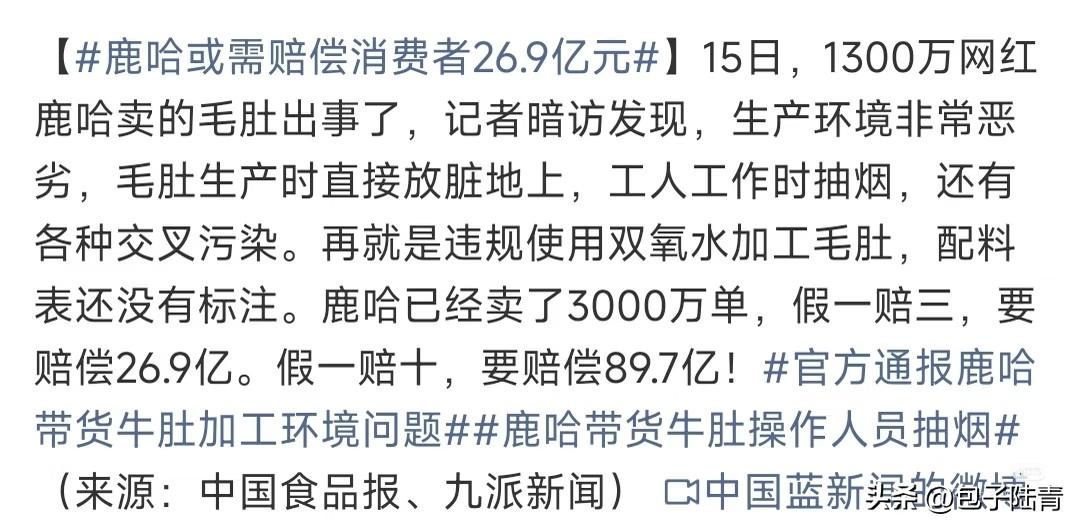 笑死了,大家一定要分清楚“鹿哈”和“鹿晗”是两个人哈,315出事的是网红带货博主