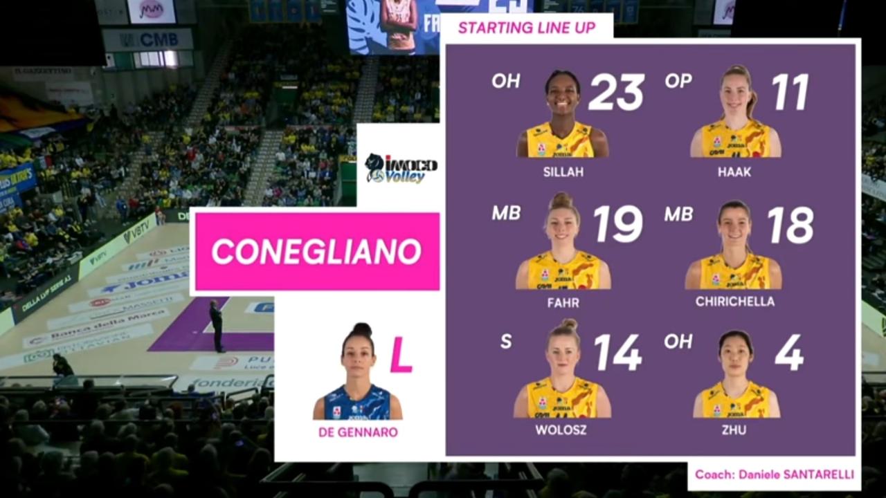 朱婷首发出战17中3拦1发砍下21分,荣膺MVP!助力科内3-2逆转诺瓦拉,赢下意甲半决赛首回合! 北京时间3月16日凌晨,女排意甲半决赛首回合(五场三胜制)的第二场比赛打响,常规赛冠军科内利亚诺坐镇主场,对阵排名第四的诺瓦拉。 此役,加比进入大名单却未首发,主攻位置由朱婷与西拉搭档出战。 第一局,两队开局战成8-8平,中局阶段科内16-14领先。局末哈克进攻受阻,科内以23-25先失一局。 第二局,诺瓦拉发球表现出色,前半局科内落后5分。紧要关头,朱婷挺身而出,将比分追至21-21平,又挽救一个局点后,哈克防守失误,科内23-25再输一局。前两局,朱婷13扣8中(成功率62%)、1拦,共得9分。 第三局,科内如梦初醒,早早确立领先优势,以25-15扳回一局。 第四局,科内一路领先,局末顶住对手反扑。关键时刻朱婷拦网得分,帮助球队以26-24扳平总比分。 决胜局,科内一鼓作气,朱婷一锤定音,以15-13结束比赛。 最终,科内3-2逆转对手,取得意甲半决赛首回合胜利。 本场比赛,朱婷32扣17中(0失误1被拦)、3拦、1发,共得21分,可谓攻防俱佳。美中不足的是,面对诺瓦拉凶狠的发球,朱婷一传失误较多。