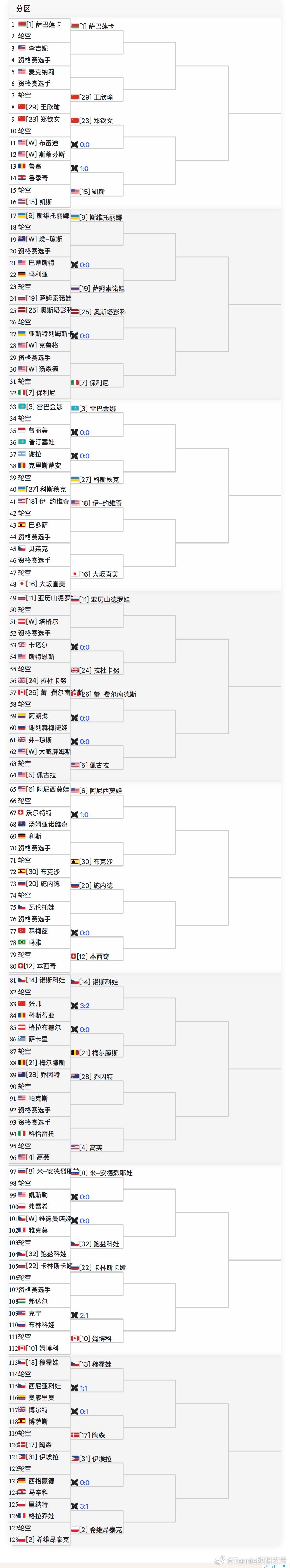 迈阿密赛郑钦文萨巴伦卡同区🔵WTA1000迈阿密女单正赛签表【23】🇨🇳郑