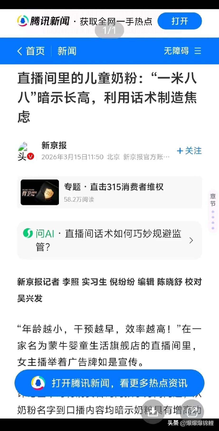 315晚会刚播完,估计有一拨人得急得直拍大腿。 谁啊?就是天天盼着“与辉同行”翻车的那群黑子。结果人家卖的东西连个边都没擦上,干干净净。 这下可算是让那些拿着放大镜挑刺的人大失所望了。倒是你们自己拼命护着的某个直播间,直接“露脸”中招。 那个188块钱的奶粉,打着能让孩子长高的噱头,把家长们当韭菜一顿狂割。 我觉得这种收割焦虑的套路最让人火大。当爹妈的为了孩子啥钱都舍得掏,结果买回来一堆智商税。 现在网上的直播录屏到处都是,铁证如山。 那些被坑了的冤大头赶紧拿着证据去理赔。这次都这样了,看他们还怎么狡辩。