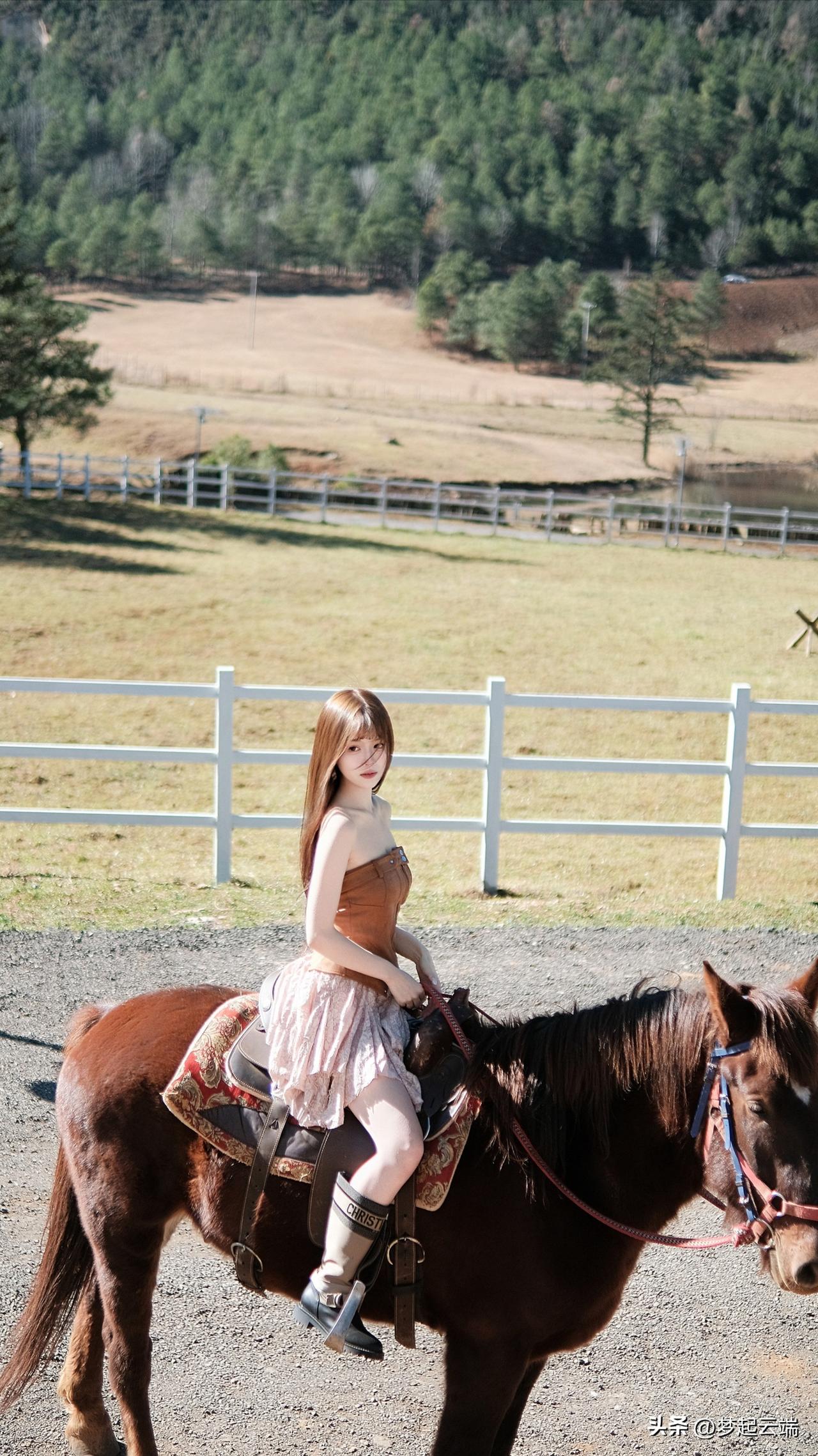 在山间骑马,享受自由与自然的美好时光。