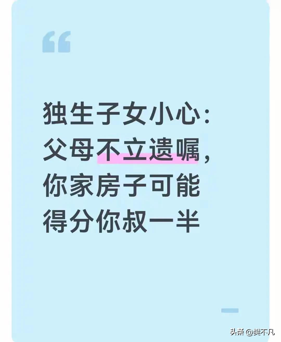 独生女继承父母280万房产,却被叔叔拦住:你奶奶那份,我们要分! 杭州的小林,这辈子最崩溃的一天,是在房产交易中心。 她拿着父母的死亡证明、房产证,去办理继承手续。 280万的学区房,父母一辈子的心血,她是独生女,这房子天经地义该归她。 结果工作人员说:对不起,这套房子不能直接过户,你叔叔们不同意。 小林懵了。 叔叔?我继承父母的房子,关叔叔什么事? 叔叔们找上门来,话说得很直接:你奶奶那部分遗产,我们要分。要么给100万,要么按比例过户,不然你别想拿到房本。 小林当场就哭了。 她是独生女,父母走了,最亲的人没了,现在叔叔和姑姑还想着来分房产,凭什么? 这套房子,房本上写的是小林爸爸的名字。 爸爸先走,妈妈后走,等小林去办手续时,才发现一个致命的问题。她爸爸走的时候,奶奶还在世。 奶奶是爸爸的母亲,是第一顺序继承人。爸爸的遗产,奶奶有份。 虽然奶奶后来也走了,但那份继承权,没消失。 奶奶的遗产,由她的子女继承,也就是小林的叔叔、姑姑们。 绕来绕去,结果就是:小林父母拼了一辈子买的房,叔叔们真的有份。 咱们算一笔细账。 这套房280万,是父母的夫妻共同财产。 第一步:爸爸去世时,房产怎么分? 房子一半是妈妈的,另一半是爸爸的遗产。 爸爸的遗产(140万)由三个人继承:妈妈、小林、奶奶。每人分1/3,约46.7万。 这时候的份额是: - 妈妈:原本的一半(140万) + 继承的46.7万 = 186.7万 - 小林:46.7万 - 奶奶:46.7万 第二步:奶奶去世了,她那份怎么办? 奶奶的46.7万,由她的子女继承,小林的爸爸、叔叔、姑姑。 但爸爸已经走了,他那一份由小林代位继承。 所以奶奶的46.7万分四份:小林(替爸爸)一份,两个叔叔各一份,姑姑一份。 每人约11.7万。 第三步:妈妈去世时,她的份额归小林。 妈妈那186.7万,全部由小林继承。 最终结果: 小林拿到:46.7万(爸爸遗产) + 186.7万(妈妈遗产) + 11.7万(替爸爸继承奶奶部分) = 245万两个叔叔各拿11.7万,共23.4万 姑姑拿11.7万 三个人加起来,35万左右。 所以,叔叔们要的,是这35万。 站在小林的角度,这事确实难以接受。 父母一辈子省吃俭用,没靠过任何人,就攒下这套房。她是独生女,爸妈的所有东西不都该是她的吗? 叔叔们从小到大没帮过什么忙,凭什么爸妈走了,他们来分钱? 但法律不这么看。 《民法典》第1127条写得清楚:法定继承的第一顺序继承人,包括配偶、子女、父母。 不是只有子女。 爸爸去世时,奶奶还活着,她就是合法的继承人。这是她的法定权利,不因为小林是独生女就消失。 奶奶后来走了,她的遗产由她的子女继承。叔叔们是奶奶的儿子,当然有份。 法律不讲“我觉得不公平”,只讲“规定是什么”。 小林这事,其实完全可以避免。 如果爸爸生前立了遗嘱,写明“我的遗产全部由女儿小林继承”,那就没奶奶什么事了,叔叔们更没份。 但中国人忌讳谈死,更忌讳立遗嘱。 很多人觉得:我好好的立什么遗嘱?晦气。 结果呢?人走了,钱没安排好,亲人反目成仇。 小林和叔叔们,本来是一家人,现在为了35万,闹到法院,就算最后拿到钱,亲情也碎了,值吗? 小林的事,不是个例。 网上随便一搜,全是类似的故事: 独生女继承父母房产,被舅舅告上法庭 父亲去世,姑姑来分房子 奶奶去世后,叔叔要分走一套房 为什么? 因为很多人不懂:父母走了,不代表财产自动全归你。 爷爷奶奶、外公外婆,都是第一顺序继承人。他们在,就有份。他们走了,他们的子女就有份。 这不是跟你过不去,是法律规定。 唯一的解决办法,就是让父母生前立遗嘱。 遗嘱在手,谁也别想抢。 所以,如果你父母还健在,找个机会跟他们聊聊这事。别觉得不吉利,真正不吉利的,是人走了,家散了。 你觉得叔叔们该不该分这笔钱?评论区聊聊。