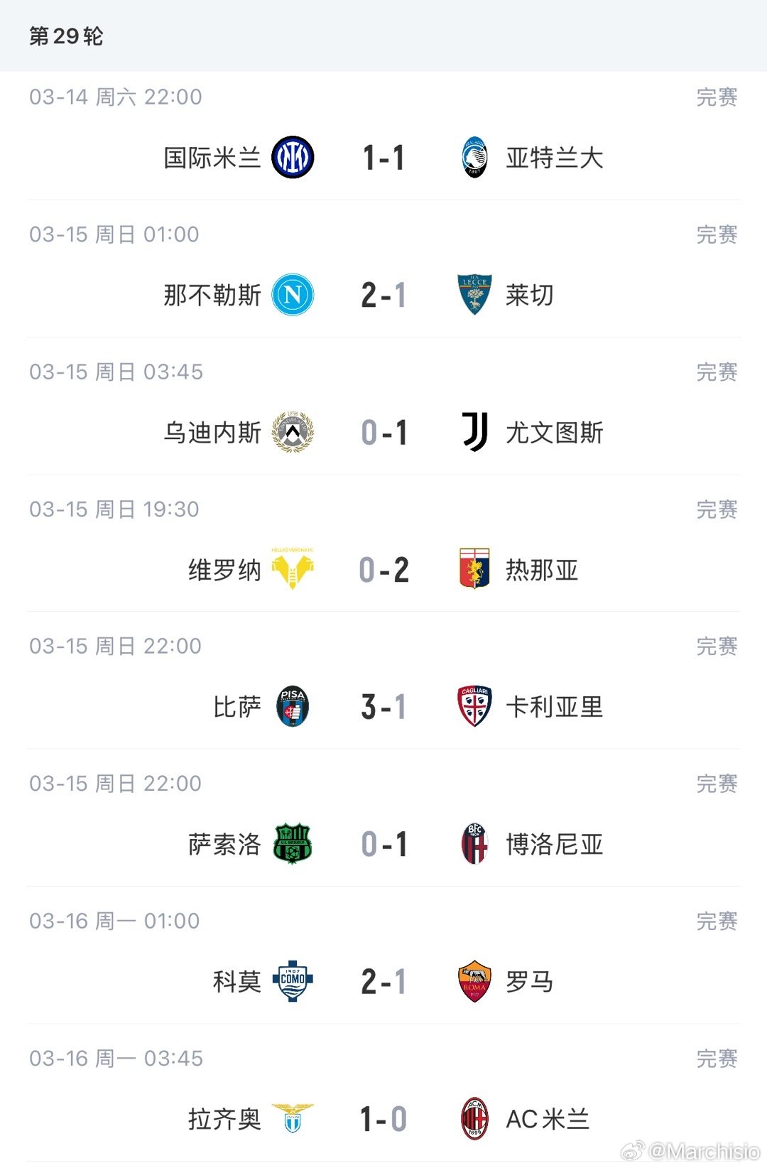 意甲第29轮后,冠军归属基本确定!争四大战更激烈!本轮,伤兵满营的国米争议中被准