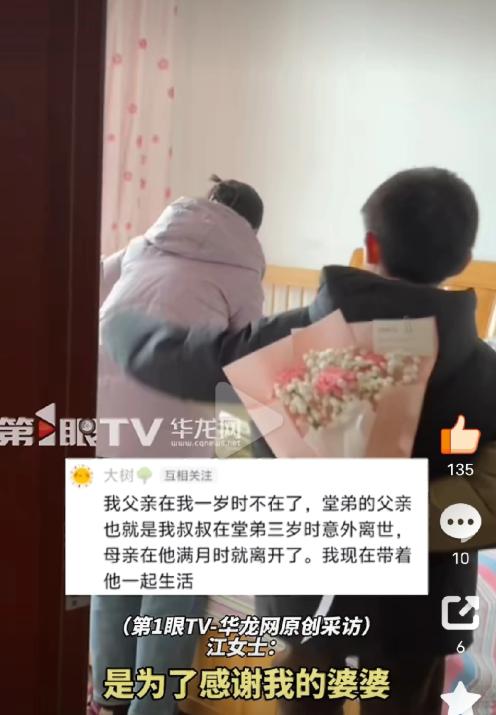 湖北,女子1岁时父亲离世,女子的叔叔对于她很多照顾。堂弟3岁时,女子的叔叔也离世了,堂弟的母亲早在堂弟满月就离开了,女子把堂弟带在了身边,女子结婚,征得婆婆的同意,女子带着堂弟到婆家生活了多年,婆婆对女子堂弟视为己出。三八妇女节,女子堂弟的一个举动,让女子婆婆泪目了。 那天,婆婆正在忙碌,就听见身后有脚步声。 回头一看,那个跟着儿媳长大的半大小子,眼神里藏着藏不住的紧张,站在不远处,半天没敢动。 这一家人的牵绊,要从十几年前说起。 女子刚满一岁,还只会含糊地喊“爸妈”,还没来得及好好感受父亲的温暖,父亲就因为一场意外,匆匆告别了这个世界。 母亲本就虚弱的身体,在日复一日的操劳和悲痛里,慢慢垮了下去。 没撑过半年,母亲也没能熬过难关,跟着父亲去了,只留下那个还在襁褓里、懵懂无知的女子。 就在邻里街坊都在为这个可怜的孩子发愁,议论着该由谁来照看她的时候。 女子的叔叔,主动站了出来,二话不说,就把这个还在襁褓里的侄女,抱回了自己的家。 一个大男人,有时候连自己都照顾不好,却硬是扛起了照顾一个小婴儿的担子。 女子长到六岁的时候,堂弟出生了。 那天家里格外热闹,叔叔抱着那个小小的婴儿,笑得眼角都起了皱纹。 女子凑在旁边,踮着脚尖,轻轻碰了碰堂弟软乎乎的脸蛋。 在这之后,叔叔和他的媳妇每天都围着两个孩子,忙得脚不沾地。 女子看在眼里,小小年纪的她,就帮叔叔一家做家务。 但在堂弟三岁那年,叔叔突然倒地,等邻里街坊把他送到镇上的医院,已经来不及了。 那天女子放学回家,看到家里围满了人,大人们都在低声啜泣,她一下子就慌了,冲进屋里,看到叔叔静静地躺在床上。 而在这之后,堂弟的妈妈就留下一张字条,悄无声息地离开了,没人知道她去了哪里,也没人再见过她。 从那以后,女子带着堂弟,住在叔叔留下的老房子里,靠着叔叔留下的一点积蓄,还有邻里街坊的接济,艰难地过日子。 有好吃的,她先给堂弟吃;有新衣服,她先给堂弟穿;堂弟生病的时候,她背着他,走几里路去镇上的医院,整夜守在床边,不敢合眼。 日子一天天过去,女子到了谈婚论嫁的年纪,媒人给她介绍了好几个对象。 可她每次都先说明,必须同意她带着堂弟一起生活,不然就不嫁。 很多人都劝她,说带着一个没有血缘关系的弟弟,会拖累自己的一辈子。 可女子从来没有动摇过,在她心里,堂弟早已是她的亲人,是她无论如何都不能丢下的人。 后来,她遇上了现在的丈夫,丈夫知道后打心底里心疼她,还主动说,以后要和她一起,好好护着堂弟。 眼看着婚期越来越近,女子的心里却一天比一天忐忑,总怕婆婆不能接受堂弟。 思来想去,她还是决定主动找婆婆再说一说这个事情。 让她没想到的是,婆婆听完,没有半分犹豫,眼神里满是疼惜:“你尽管放心嫁过来,他就是咱们家的一份子,往后我待他,就跟待亲孙子一模一样,绝不会让他受半点委屈。” 听着婆婆的话,女子憋了许久的眼泪再也忍不住,一颗颗掉了下来,这么多年的煎熬和顾虑,在这一刻全部烟消云散。 堂弟上学后,婆婆每天都会按时接送他,放学回来,还陪着他写作业。 每到换季,婆婆都会给堂弟添置好几套新衣服、新鞋子,把他打扮得干干净净、整整齐齐。 堂弟想要什么文具、玩具,婆婆都会满足他,哪怕自己多省一点,也不会让堂弟受委屈。 堂弟也很懂事,知道婆婆疼他,平时都会帮婆婆做一些力所能及的家务,放学回家,先给婆婆倒一杯热水,再帮着扫地、擦桌子,有时候,还会给婆婆捶捶背、揉揉肩。 2026年的三八妇女节快要到了,堂弟想起这些年婆婆对他的疼爱,就想着,在三八妇女节这天,给婆婆送一份礼物,表达自己的感谢。 于是,他积攒的零花钱全部拿了出来。 有硬币,有纸币,他一分一分地数着,数了一遍又一遍,生怕数少了,不够买花。 三八妇女节那天,堂弟趁着婆婆和女子还在睡觉,小心翼翼地揣着自己攒的零花钱,独自一个人去买花。 堂弟一边走,一边在心里想着,要给婆婆买一束最漂亮的康乃馨,要让婆婆开心。 选好款式后,把自己攒的零花钱全部递了过去,店主阿姨还笑着夸他懂事,又给了他一张小小的贺卡,让他写下想对对方说的话。 回到家,婆婆已经起床了,堂弟悄悄把花束藏在身后,轻手轻脚地走到女子的婆婆身边。 婆婆回过头,看到是他,笑着说:“乖孙子,你去哪了?怎么这么早就出去了?” 堂弟深吸一口气,把藏在身后的康乃馨递了过去,脸上带着羞涩的笑容,小声说:“三八妇女节快乐,这是我送给你的花,谢谢你这些年对我的照顾。” 婆婆愣住了,眼睛紧紧盯着堂弟手里的康乃馨,又看了看眼前的半大小子,眼眶一下子就红了。 而看着贺卡上的话,婆婆再也忍不住,眼泪掉了下来,滴在贺卡上,也滴在康乃馨的花瓣上,随后她把堂弟紧紧抱在怀里。 女子站在一旁,看着眼前的这一幕,眼睛也湿润了。 (信源:第一眼TV——华龙网原创采访)