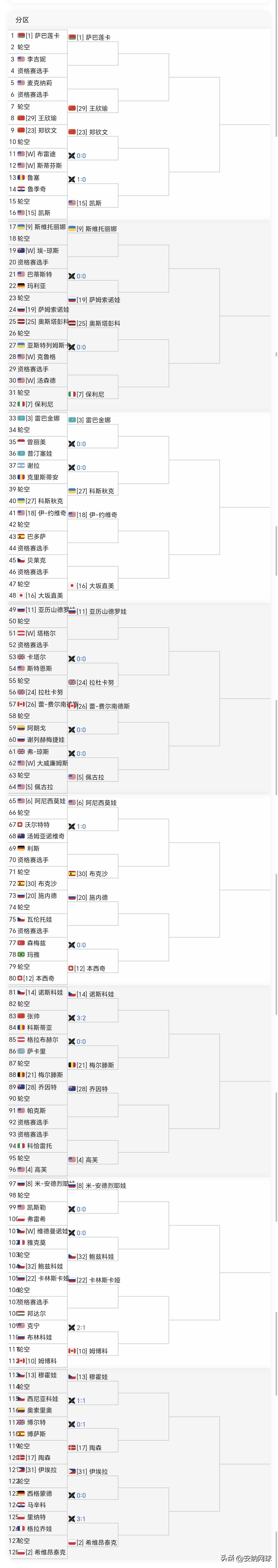 WTA1000🇺🇸迈阿密 签表已出 🇨🇳中国球员郑钦文 王欣瑜 张帅签位 🇨🇳郑钦文[23]首轮轮空 次轮对阵🇺🇸布雷迪[W] or 🇺🇸斯蒂芬斯[W] 第三轮对位🇺🇸凯斯[15] 第四轮16进8对位🇧🇾萨巴伦卡[1] 🇨🇳王欣瑜[29]首轮轮空 第二轮对阵🇺🇸麦克纳莉 or 资格赛选手 第三轮对位🇧🇾萨巴伦卡[1] 🇨🇳张帅61首轮对阵🇷🇴科斯蒂亚36 胜者将战🇨🇿诺斯科娃[14]
