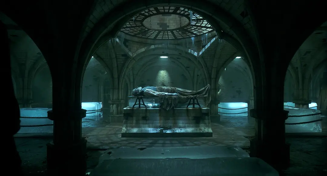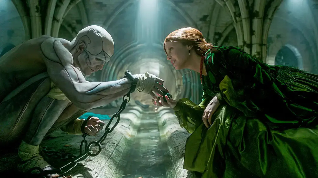 吉尔莫·德尔·托罗与美术指导塔玛拉·德弗雷尔联手,把哥特美学、蒸汽机械与生命隐喻揉成一体,场景以实体搭建为主,实验室的铜管、电极与透光瓷砖兼具工业粗粝与诗意,极地沉船、庄园宅邸的层次与质感拉满。色彩、材质、空间结构都在服务人物与主题,不做空洞炫技。复古哥特里藏着现代审美,每一处细节都参与叙事。难以想象如此精细的工艺居然是一部网飞电影,没有机会在大银幕上感受,实在遗憾。